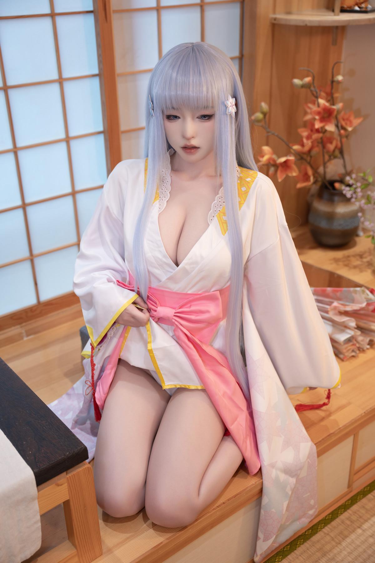 性感尤物清水由乃雪女原服主题私房性感日系服饰半脱露白色内衣秀翘臀美腿诱惑写真