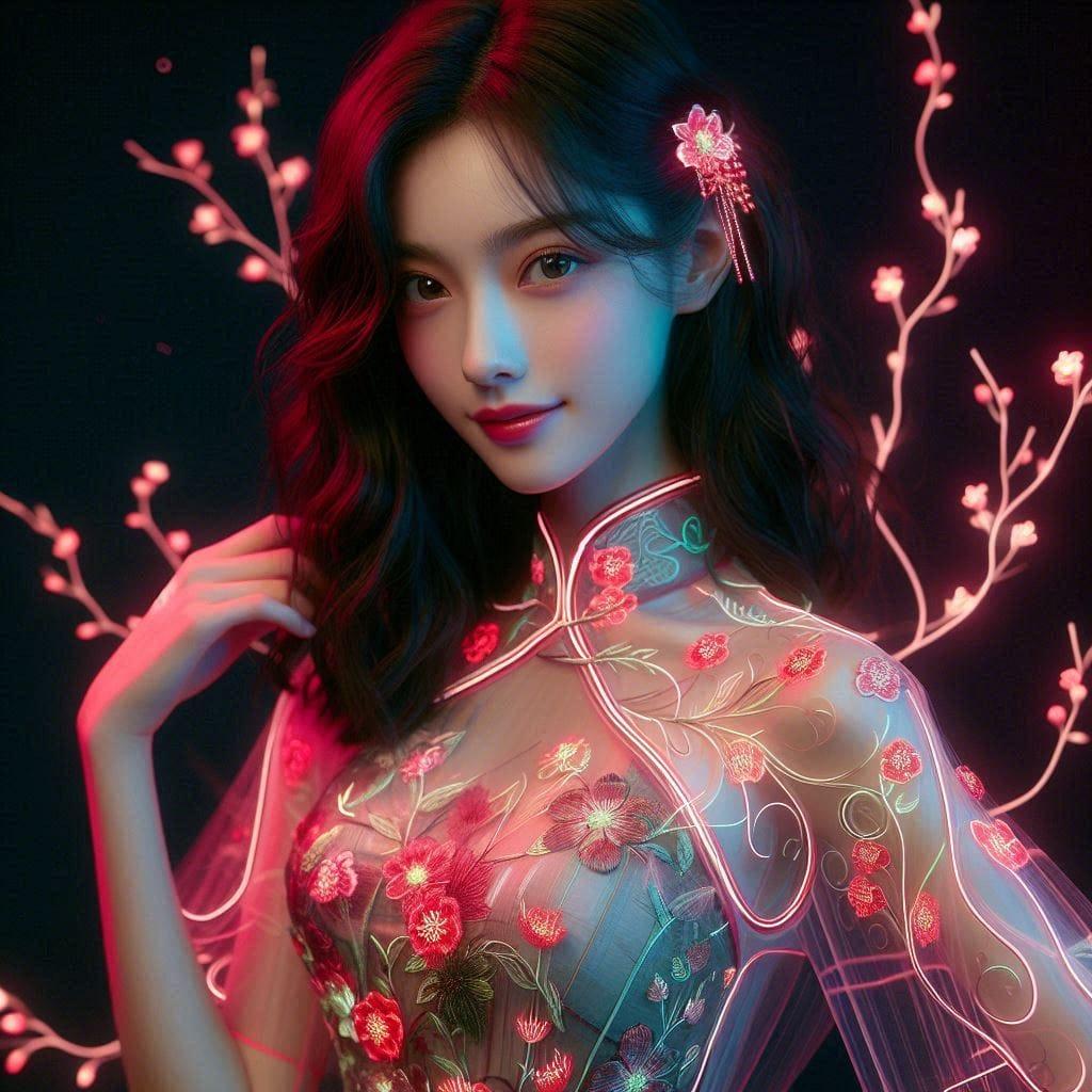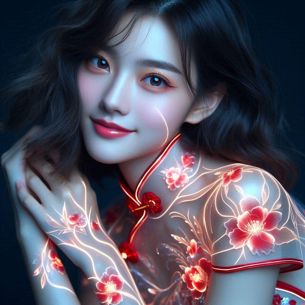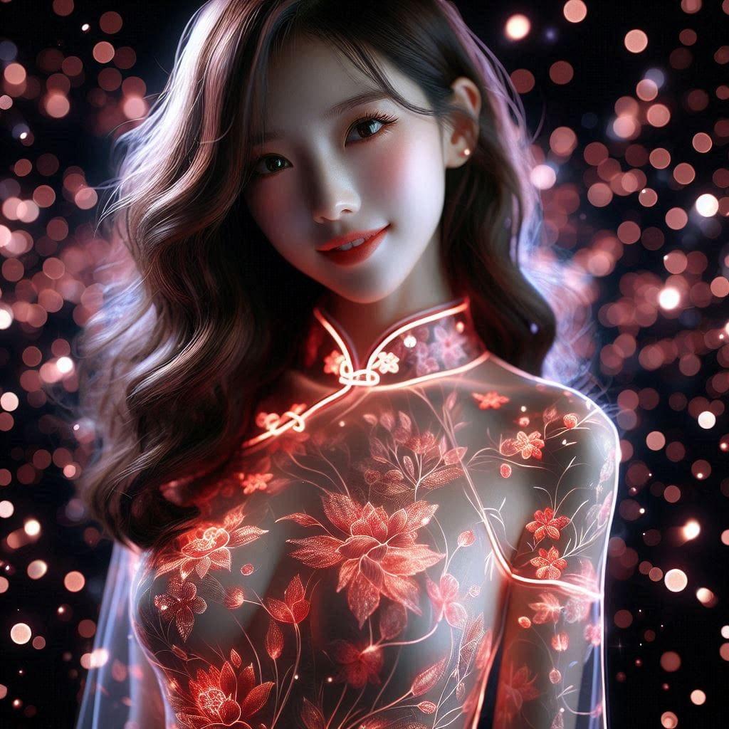 杜丹花发光旗袍
