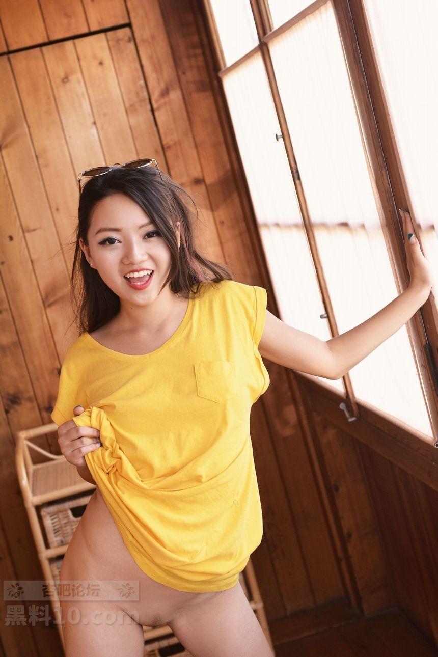 模特奶芙乔乔居家性感浅米色上衣配小短裤秀凹凸身材诱惑写真