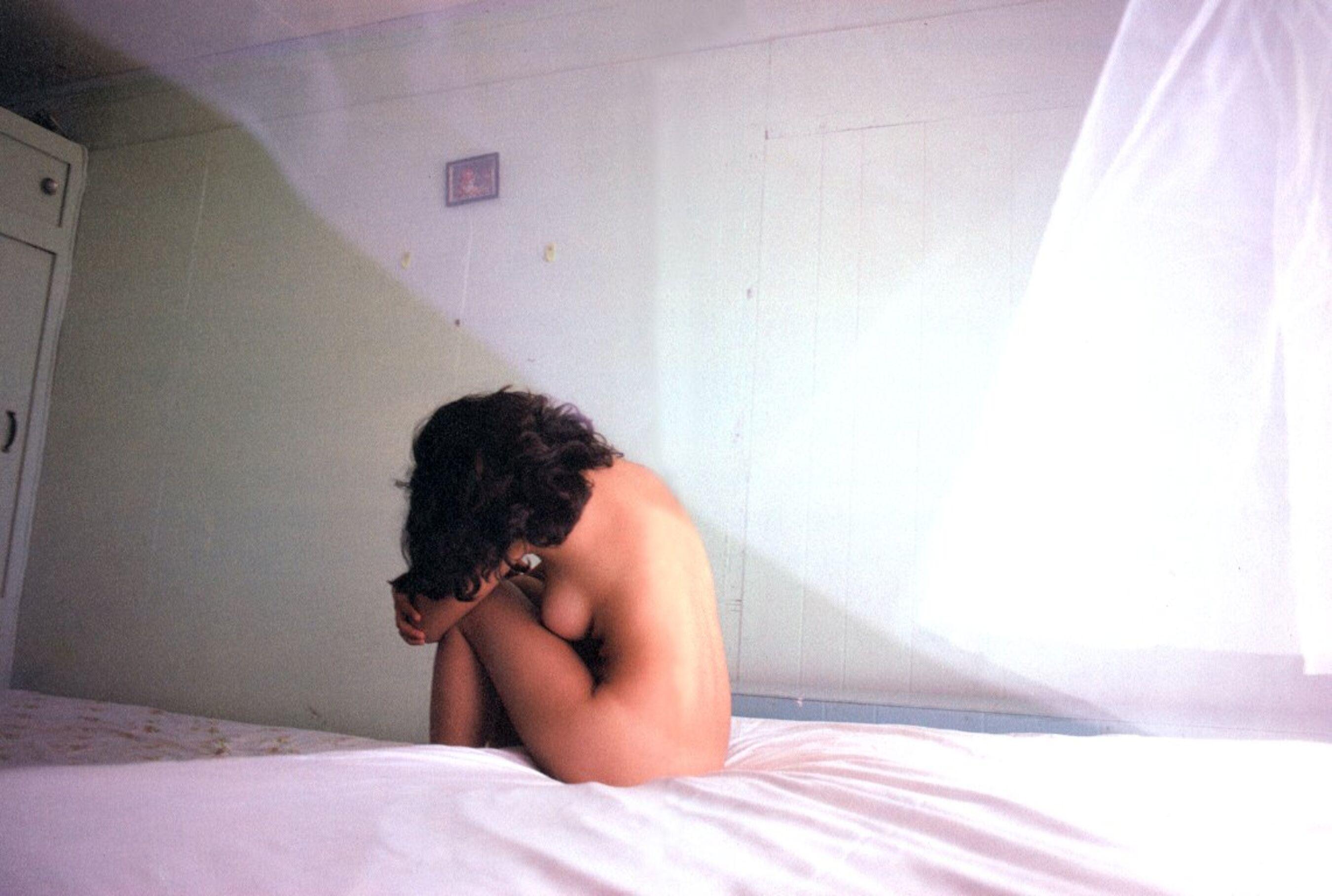 舞蹈女神捷儿黑色背景赤裸身体跪坐艺术姿势