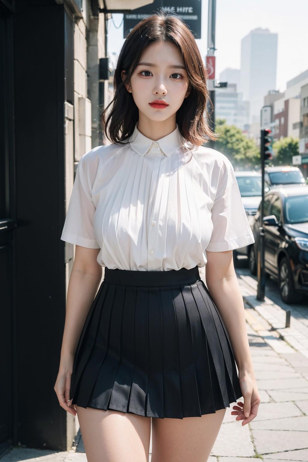 黑白百褶裙
