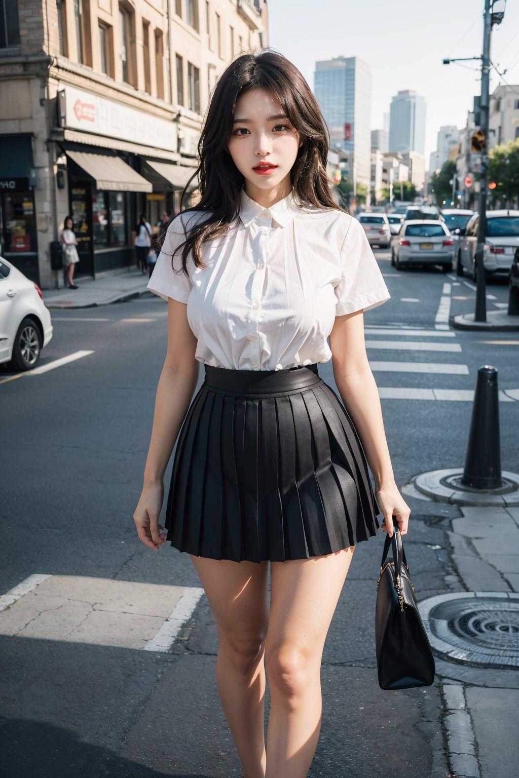 黑白百褶裙