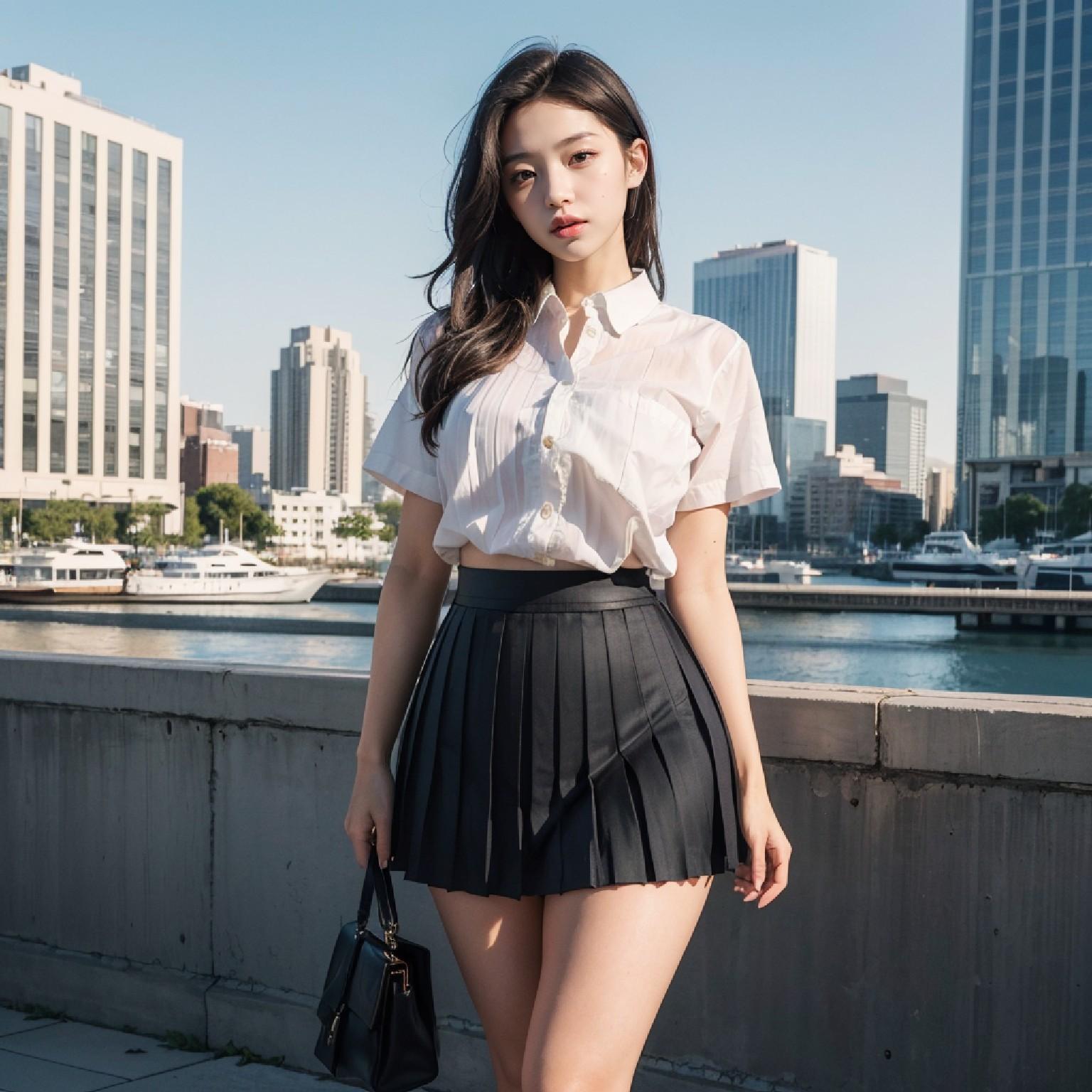 黑白百褶裙