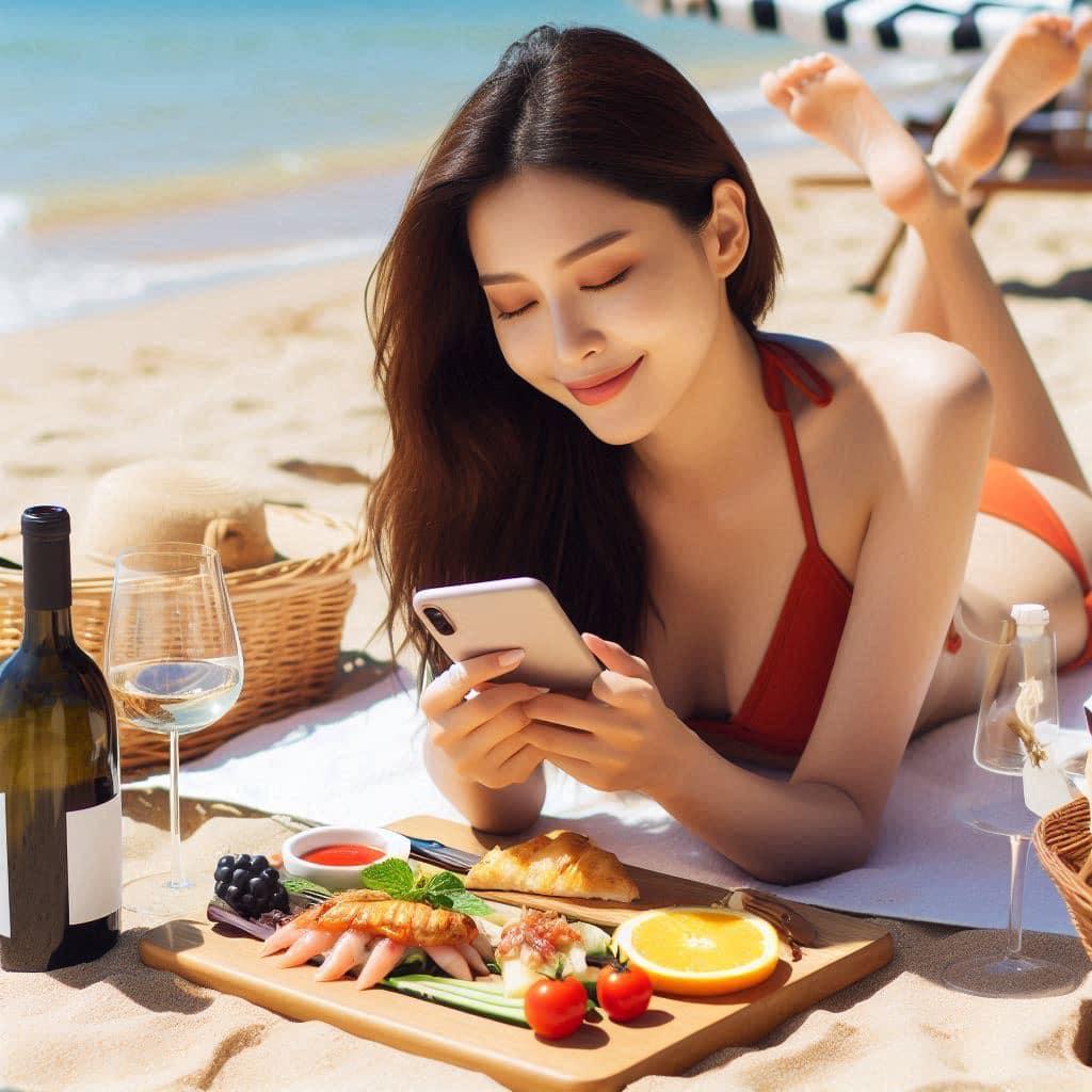 沙滩晒太阳
