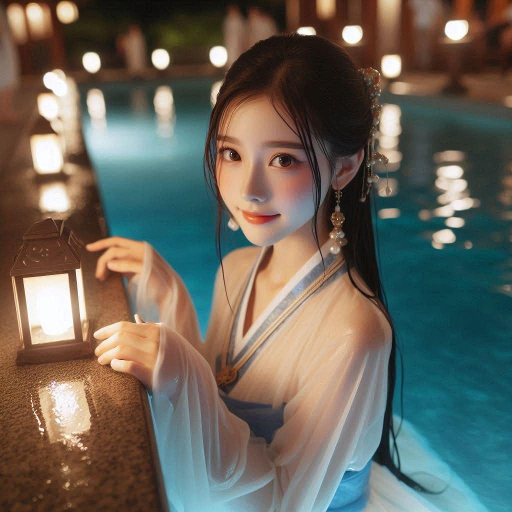 古典美女夜泳
