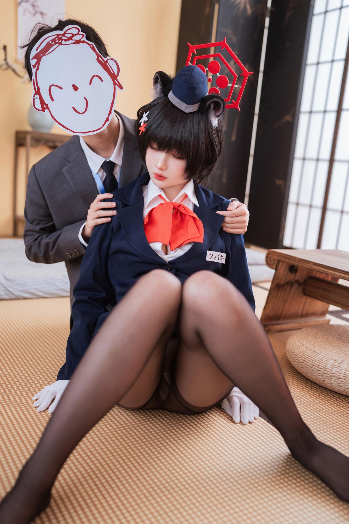 网络美女rioko凉凉子蔚蓝档案椿导游主题性感白色内衣配超薄黑丝秀丰腴身姿诱惑写真