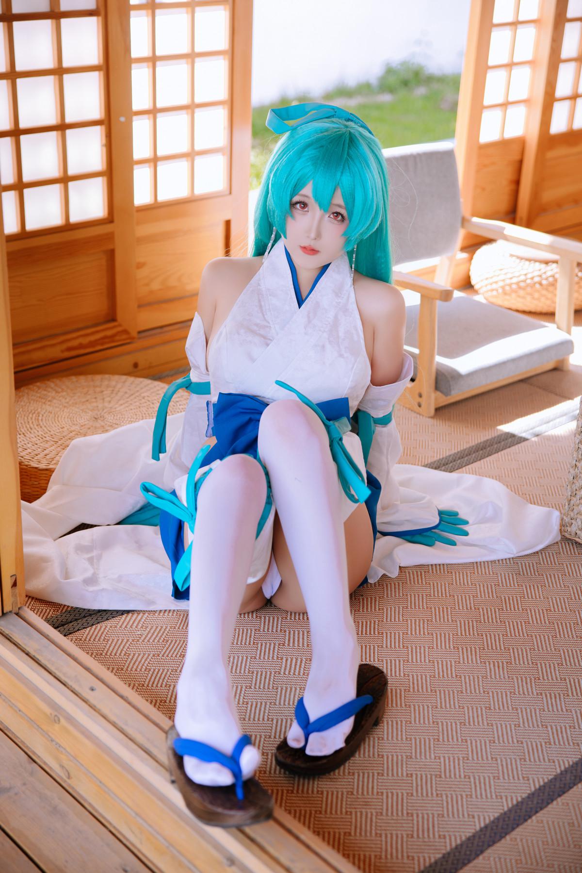 Cosplay美女日奈娇水神小夜主题性感日系服饰露白色内衣配白丝袜秀惹火身材诱惑写真