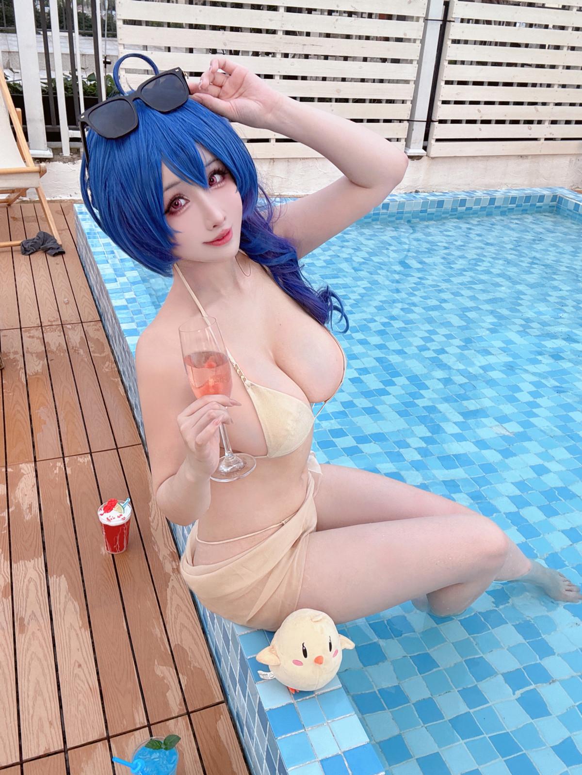 网络美女rioko凉凉子香槟色比基尼主题户外泳池边性感比基尼秀完美身材诱惑写真
