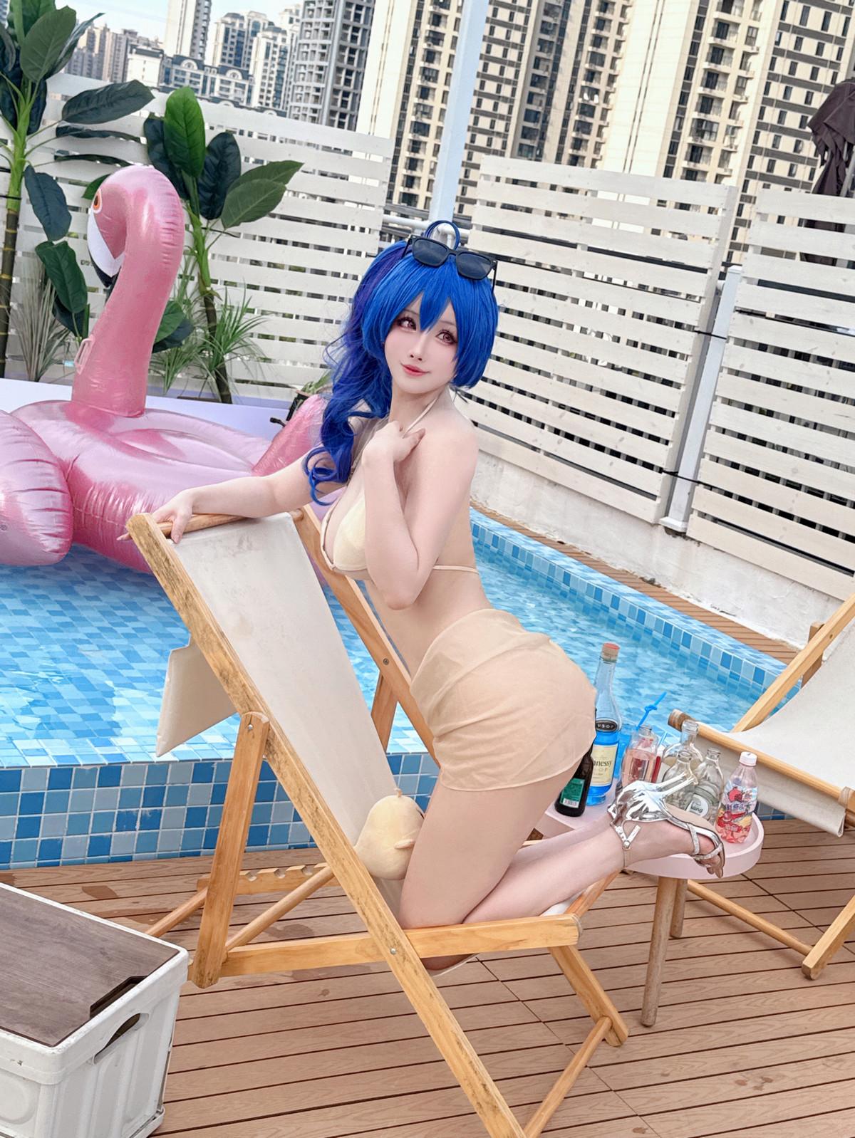 网络美女rioko凉凉子香槟色比基尼主题户外泳池边性感比基尼秀完美身材诱惑写真