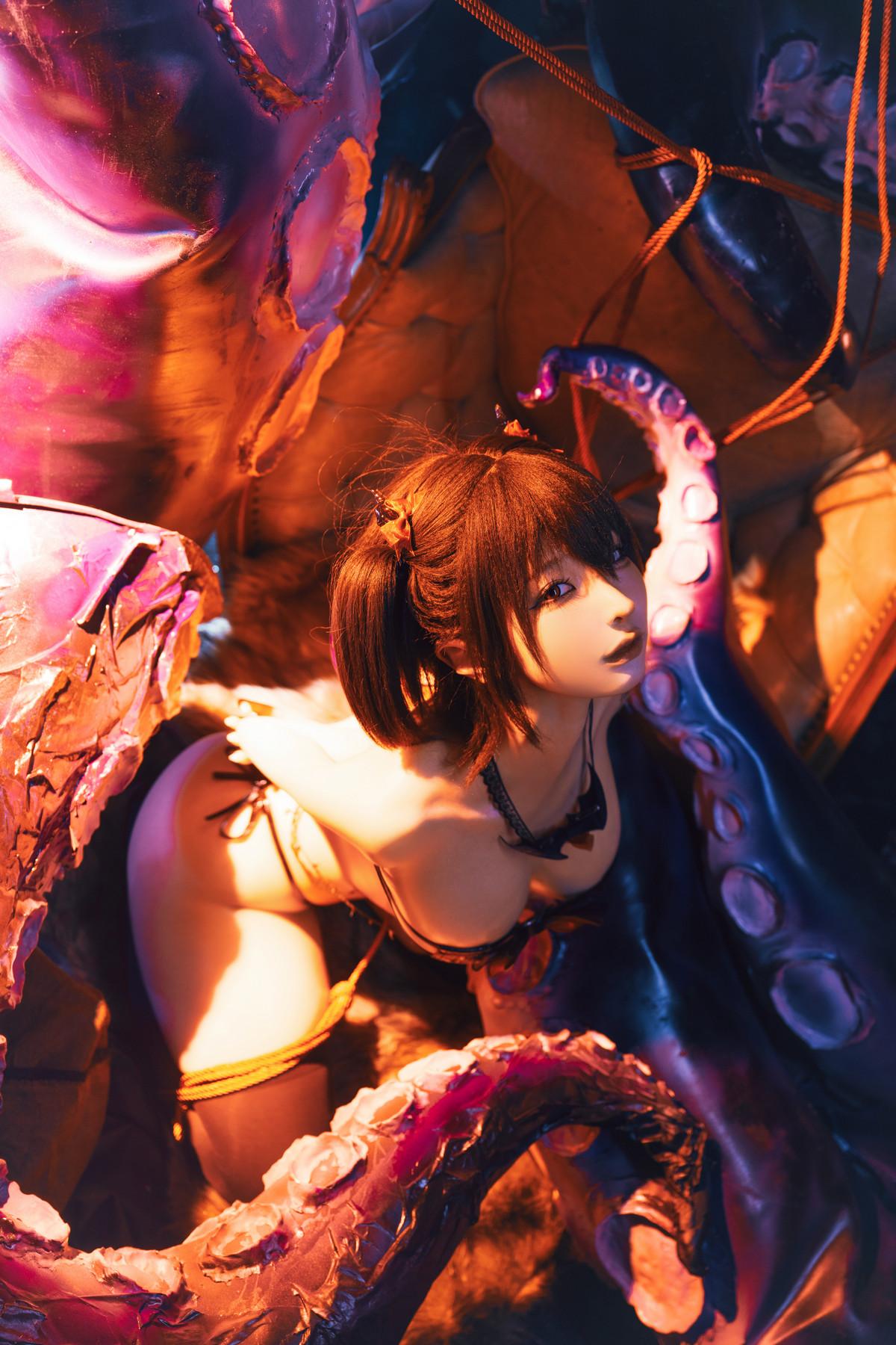 动漫博主蠢沫沫章鱼主题性感黑色情趣内衣配黑色丝袜露油亮肌肤秀惹火身材诱惑写真