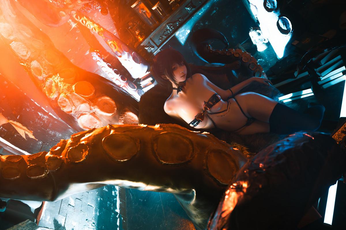 动漫博主蠢沫沫章鱼主题性感黑色情趣内衣配黑色丝袜露油亮肌肤秀惹火身材诱惑写真