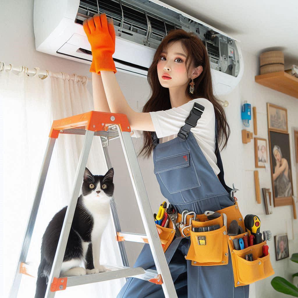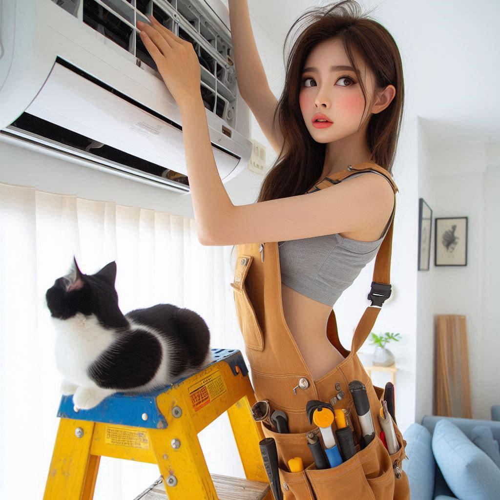 修冷气的妹子