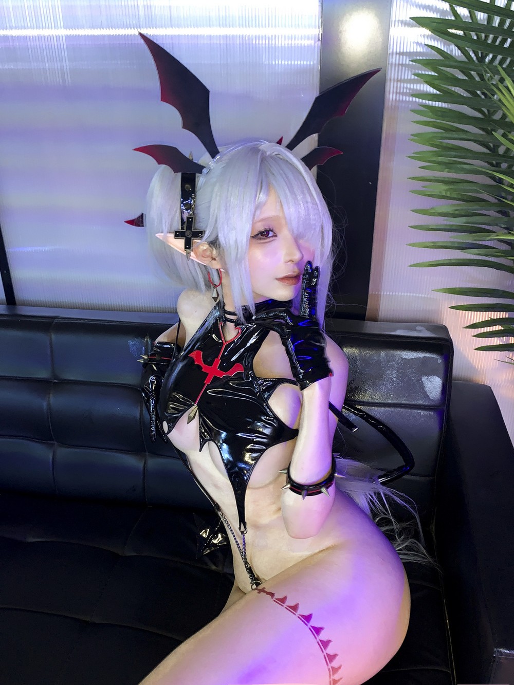 动漫博主蠢沫沫蔚蓝档案银镜伊织主题恶魔装扮性感黑色情趣内衣秀惹火身材诱惑写真