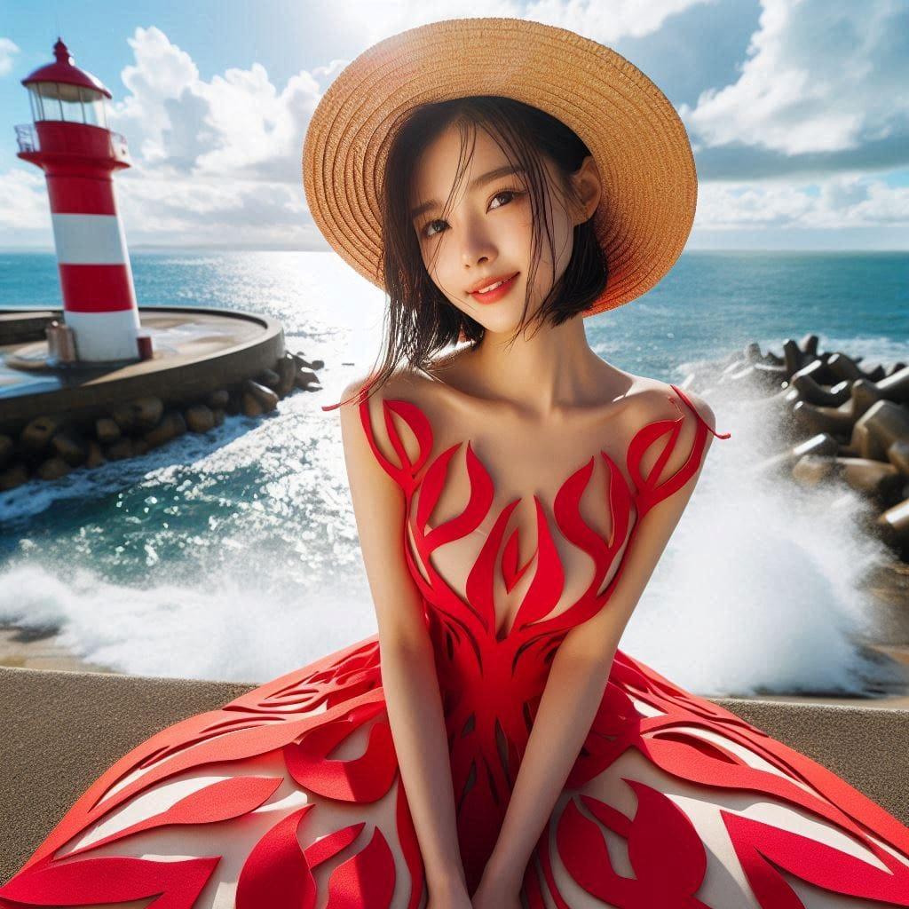 妹子的纸剪服装.海边灯塔