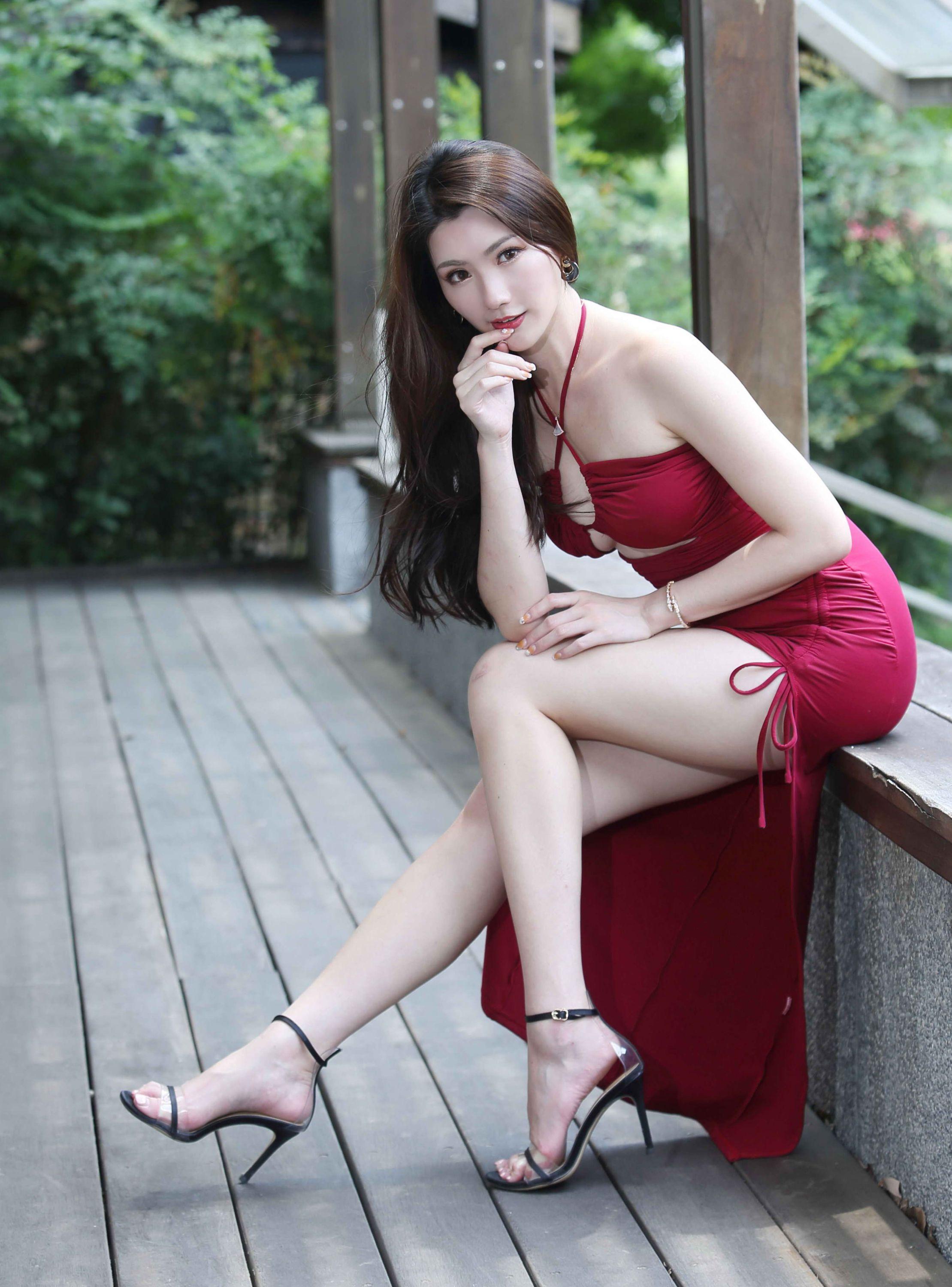 【美腿番外篇系列】长腿美模 张伦甄 高衩连衣裙 高跟美腿
