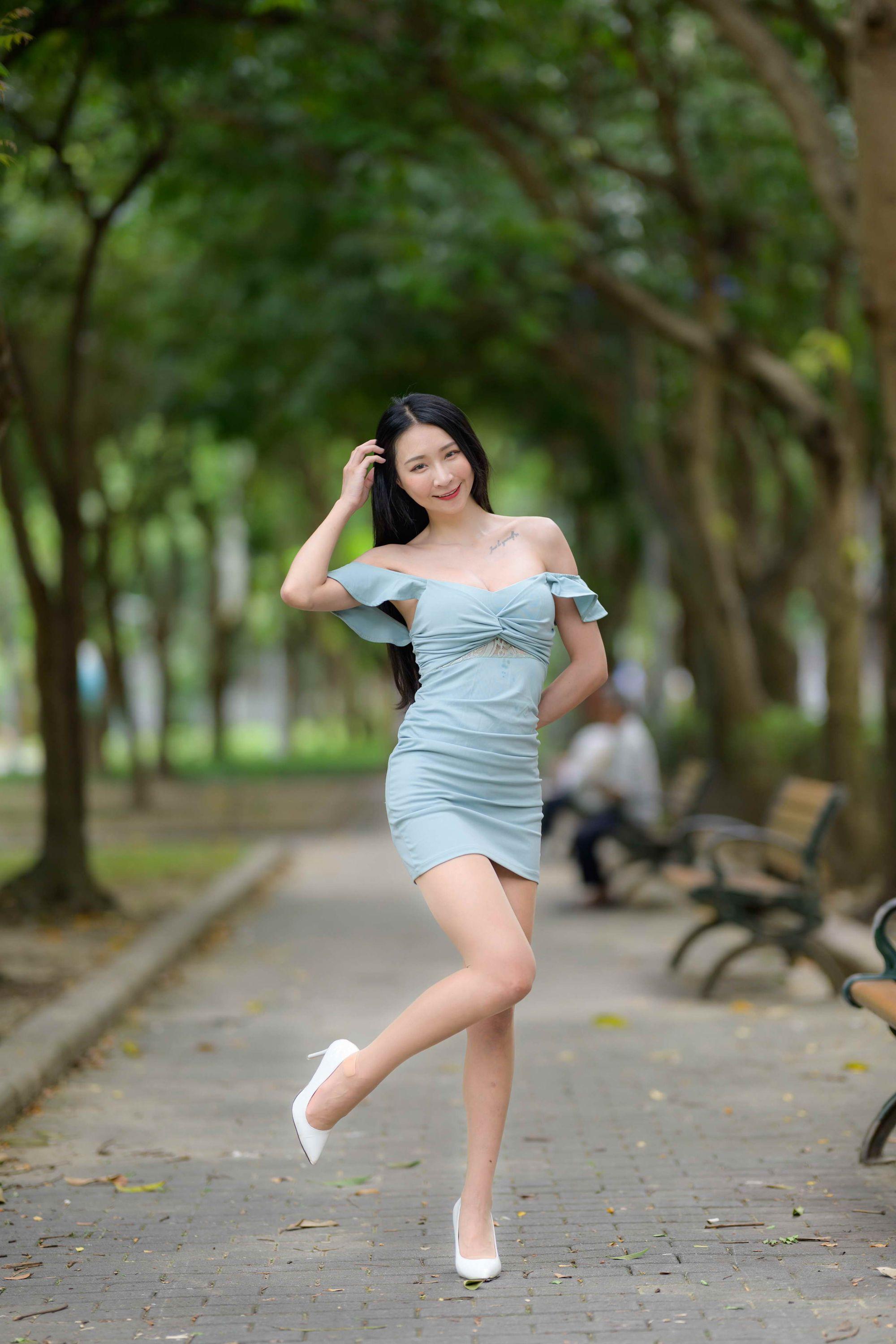 【美腿番外篇系列】长腿美模 Sunny 露肩连衣短裙 高跟美腿2