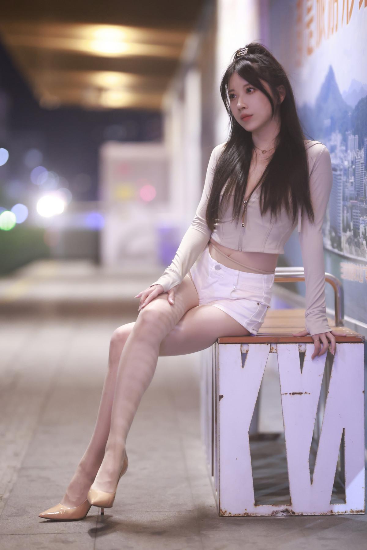 斗鱼主播小女巫露娜芳踪主题户外白色上衣配性感白色短裤露超薄肉丝秀美腿诱惑写真