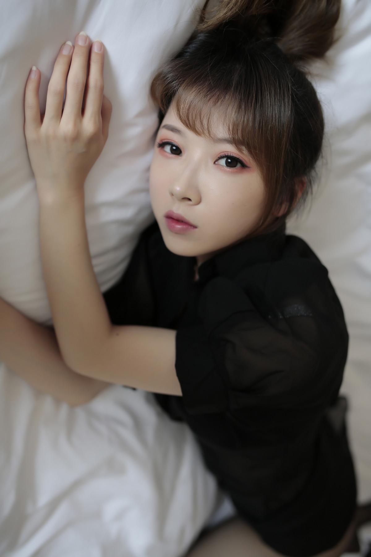 斗鱼主播小女巫露娜傲慢小姐姐主题私房床上性感黑色上衣配超薄黑丝秀美腿诱惑写真