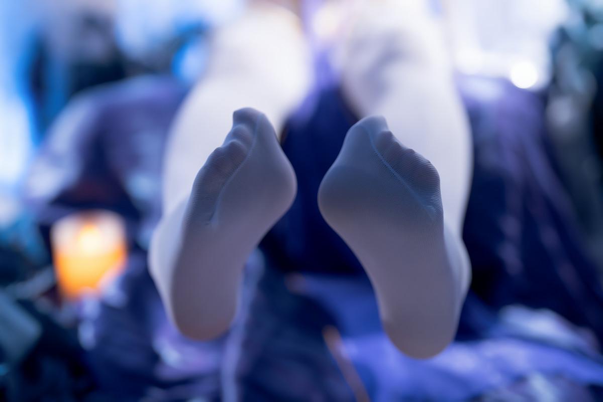 Coser小姐姐雪琪SAMA连体机械猫主题性感白色连衣礼裙配超薄连体黑丝完美诱惑写真
