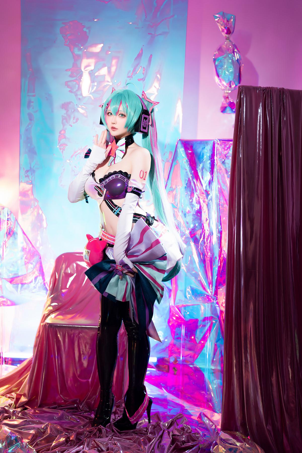 Coser小姐姐星之迟迟Miku初音未来喵斯快跑主题性感内衣配黑皮长袜秀完美身材诱惑写真
