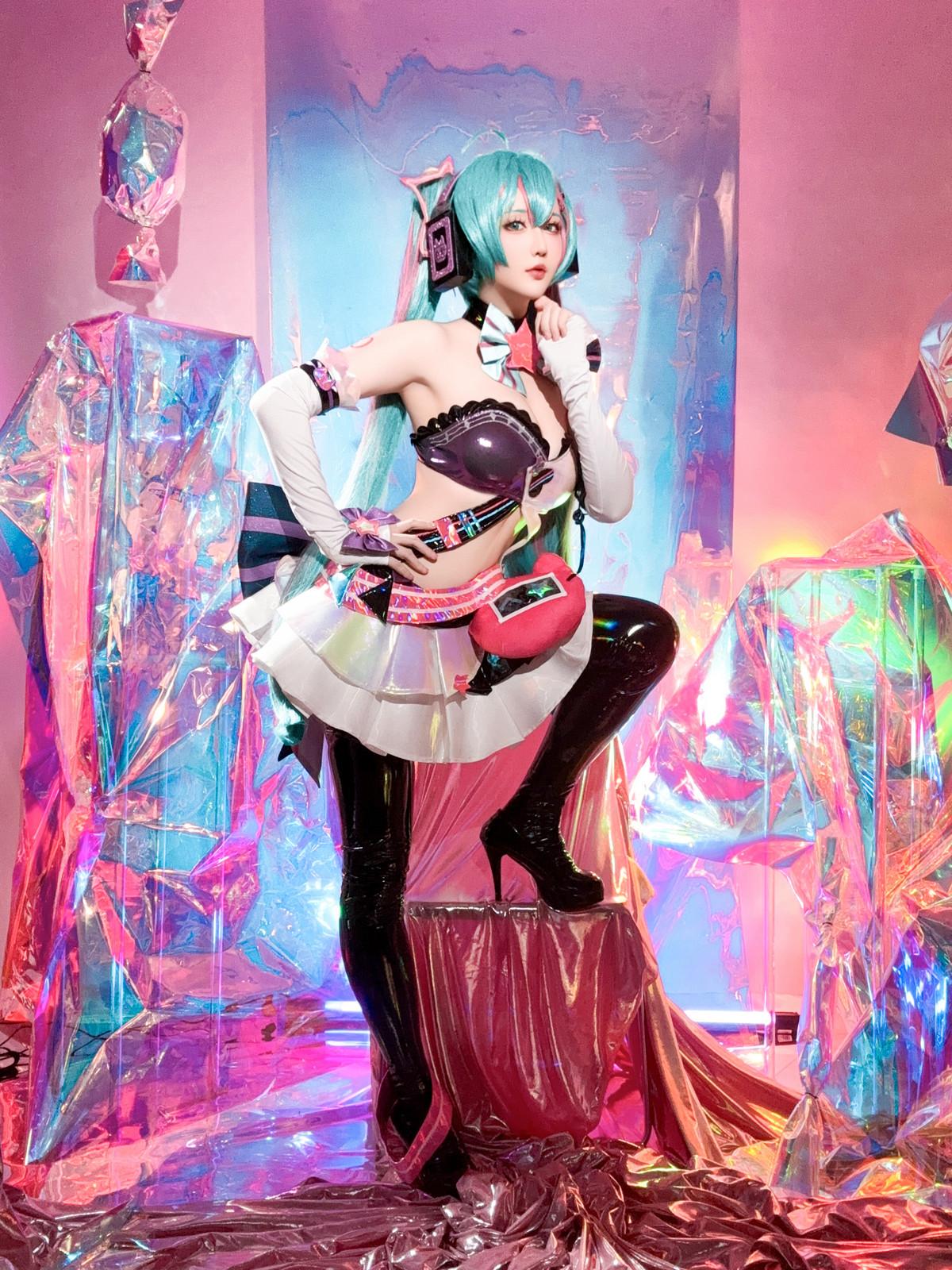 Coser小姐姐星之迟迟Miku初音未来喵斯快跑主题性感内衣配黑皮长袜秀完美身材诱惑写真
