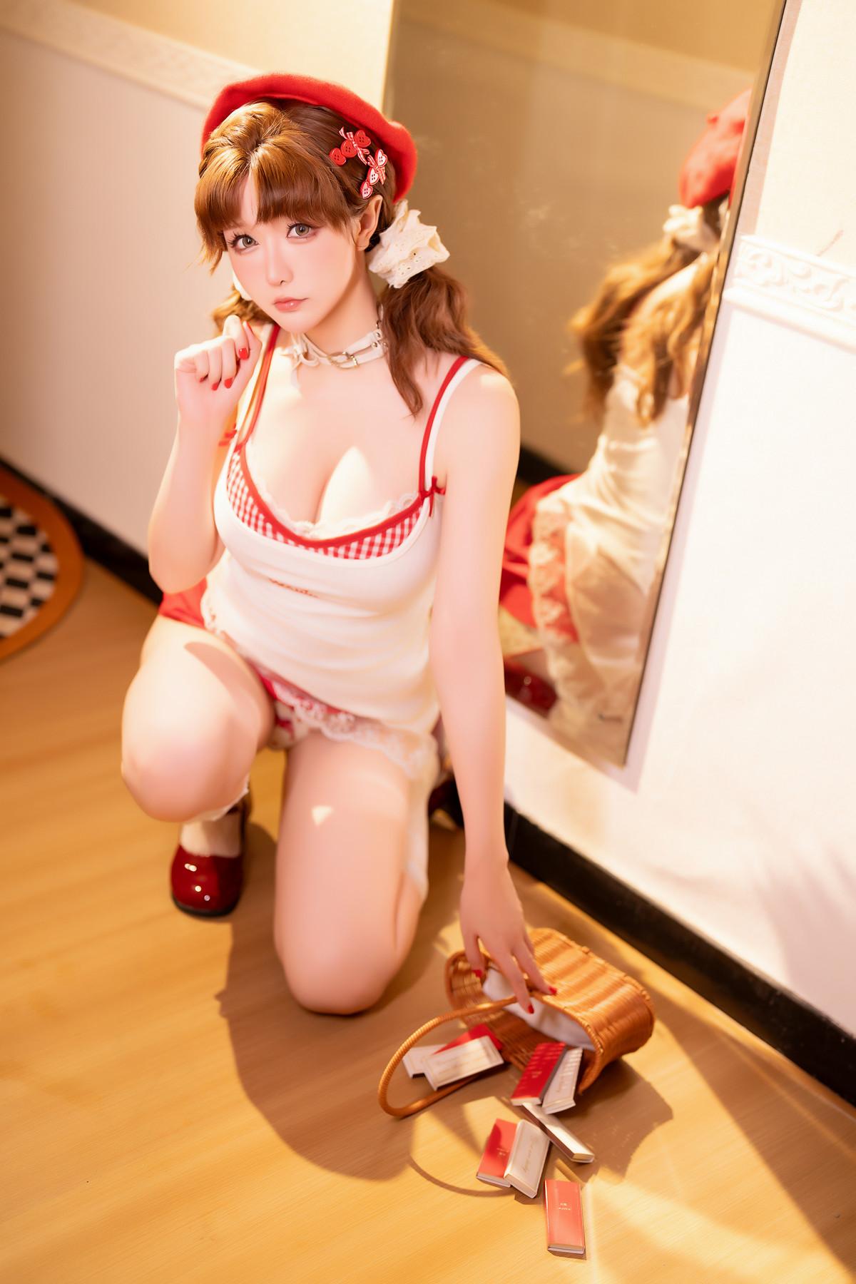 Coser小姐姐星之迟迟卖火柴的小红帽主题性感连体情趣内衣配白丝袜秀完美身材诱惑写真