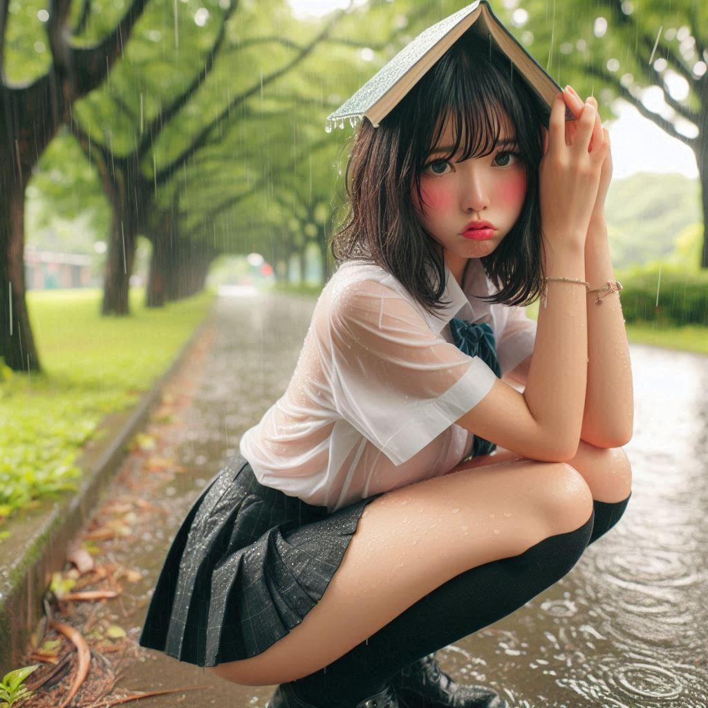 被雨淋湿的妹子嘟嘴巴