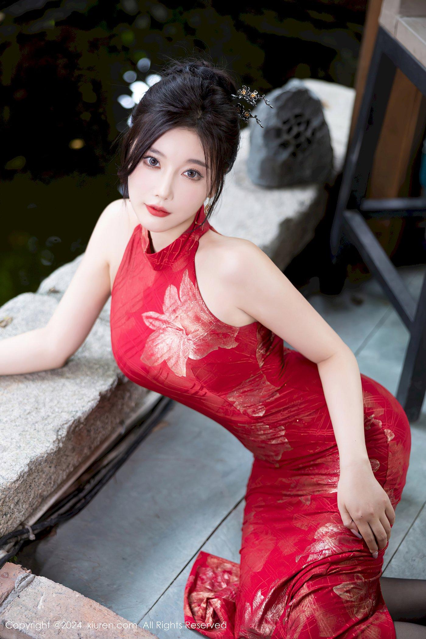 秀人网女神杨晨晨Yome红色旗袍搭配魅惑黑丝性感写真