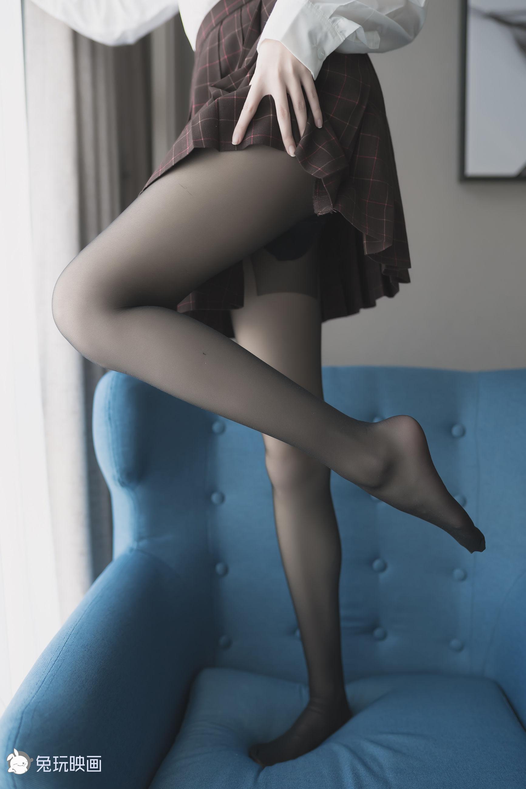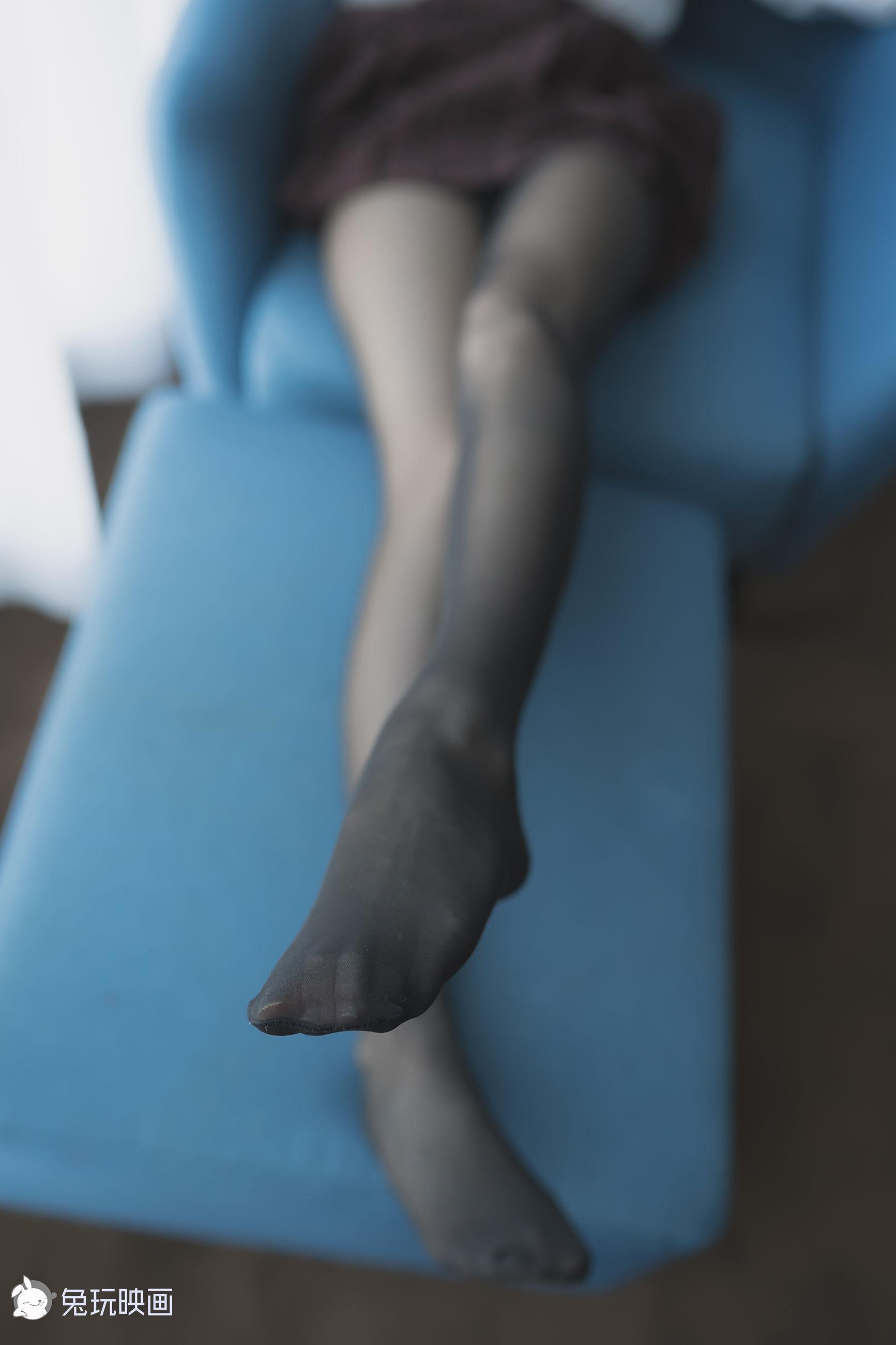 [兔玩映画] - 蓝椅子上的黑丝少女