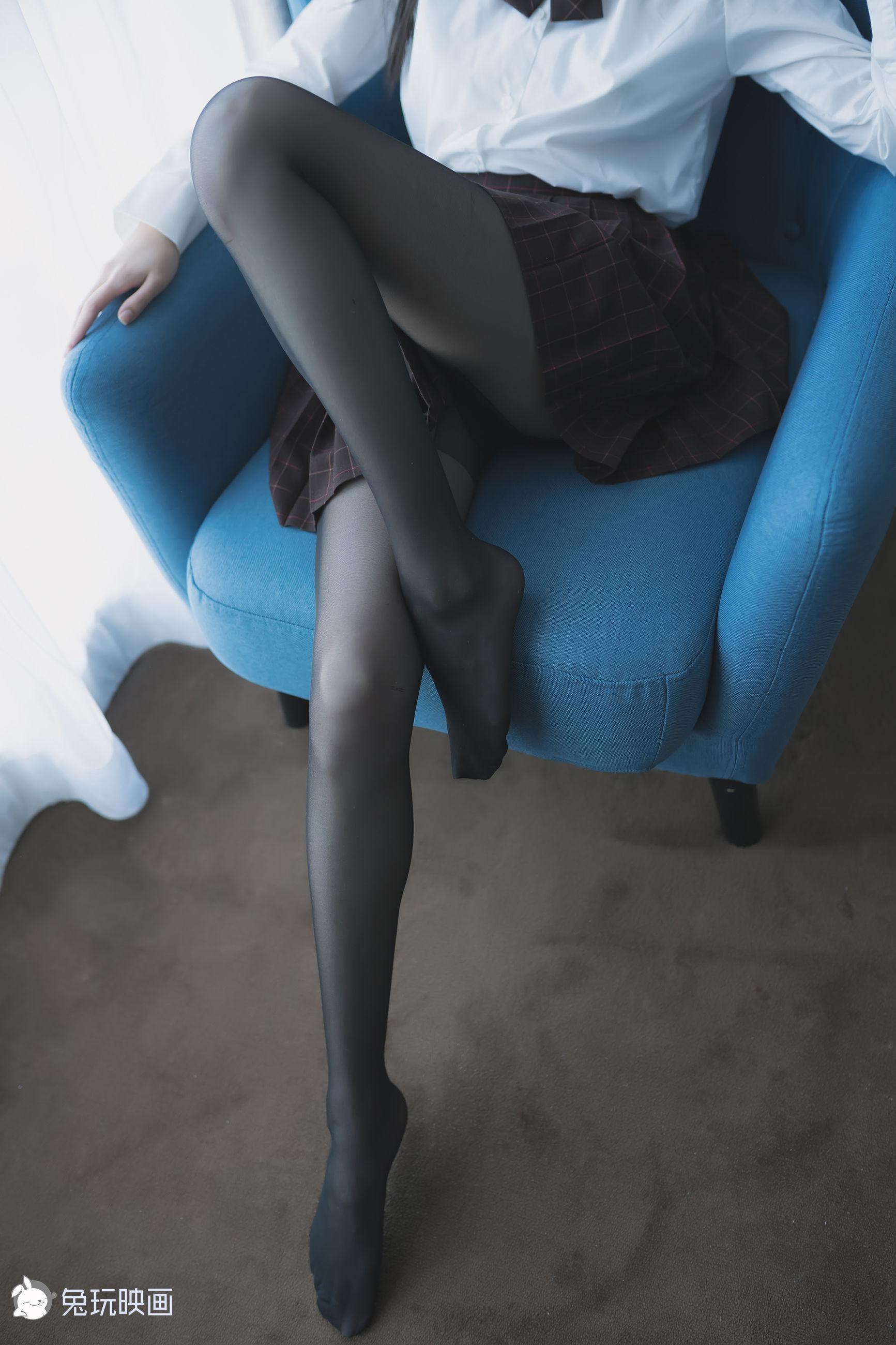 [兔玩映画] - 蓝椅子上的黑丝少女