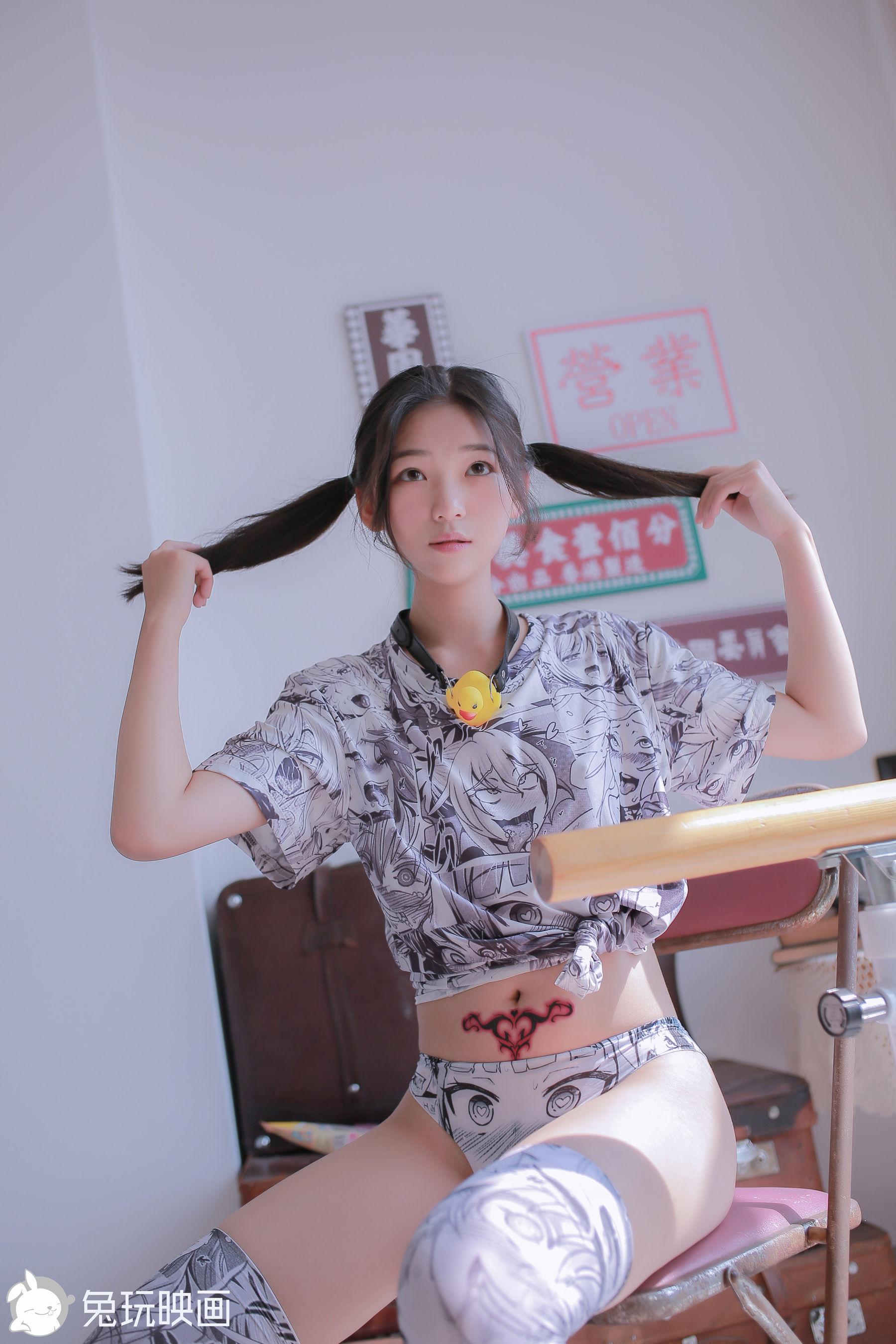 [兔玩映画] - 漫画袜子和粉色套装