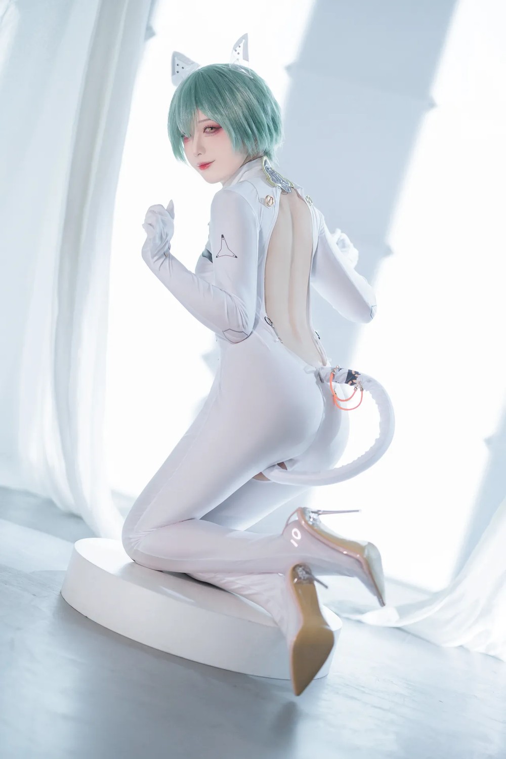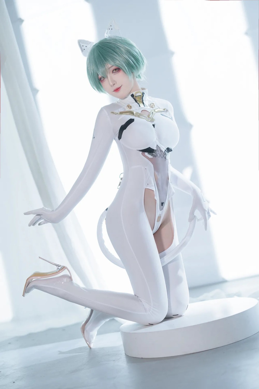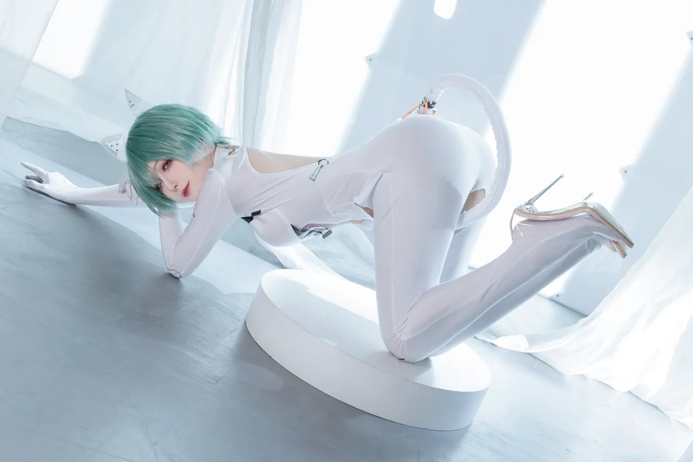 动漫博主水淼aqua原创竞泳主题性感灰色外衣下紧身高叉连体泳衣秀完美身材诱惑写真