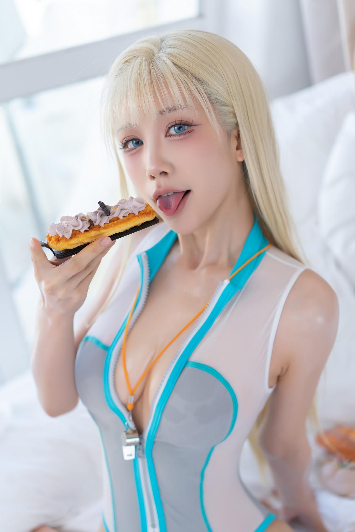 动漫博主水淼aqua原创竞泳主题性感灰色外衣下紧身高叉连体泳衣秀完美身材诱惑写真