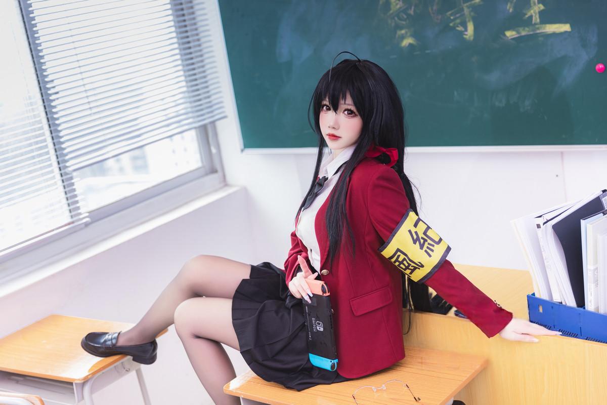 动漫博主雪晴Astra碧蓝航线风纪委员主题性感学生制服露白色内衣配黑丝袜秀美腿诱惑写...