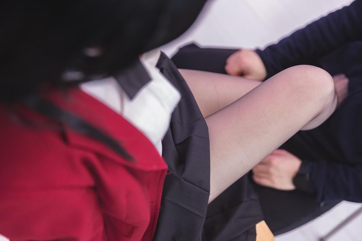 动漫博主雪晴Astra碧蓝航线风纪委员主题性感学生制服露白色内衣配黑丝袜秀美腿诱惑写...