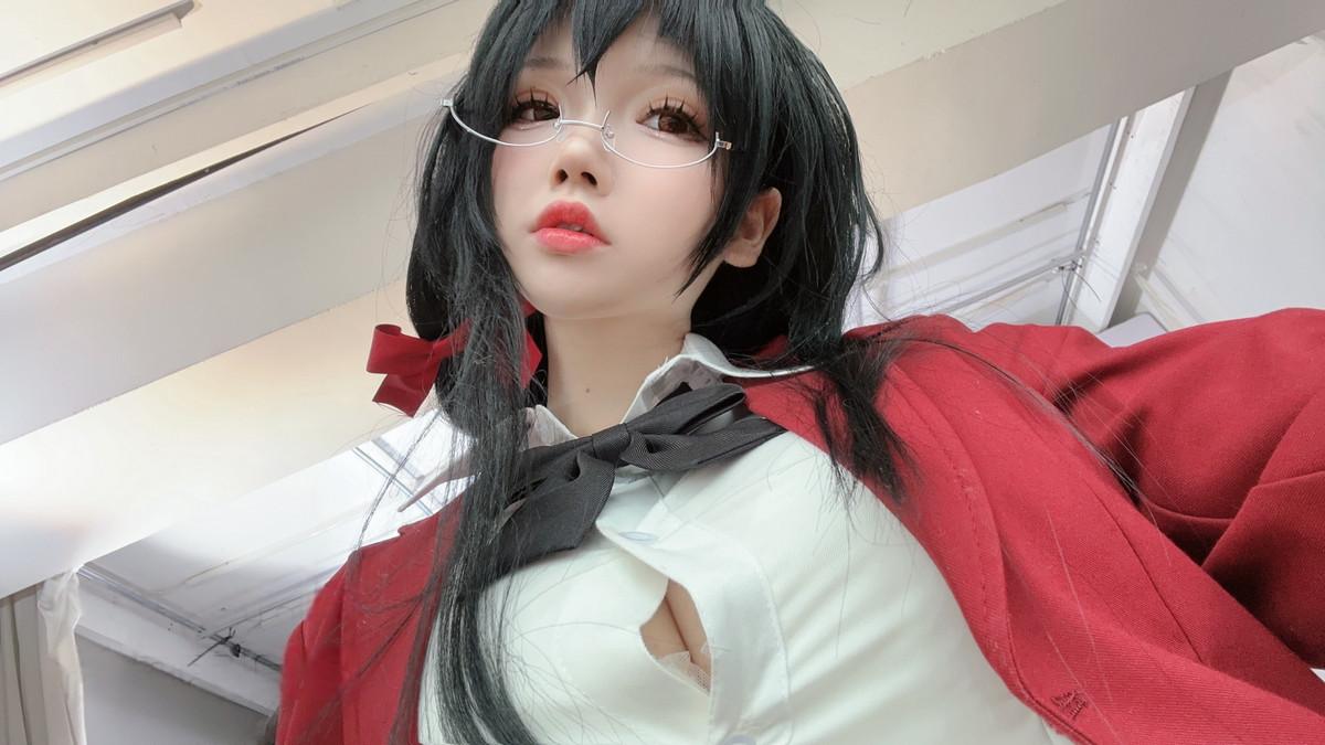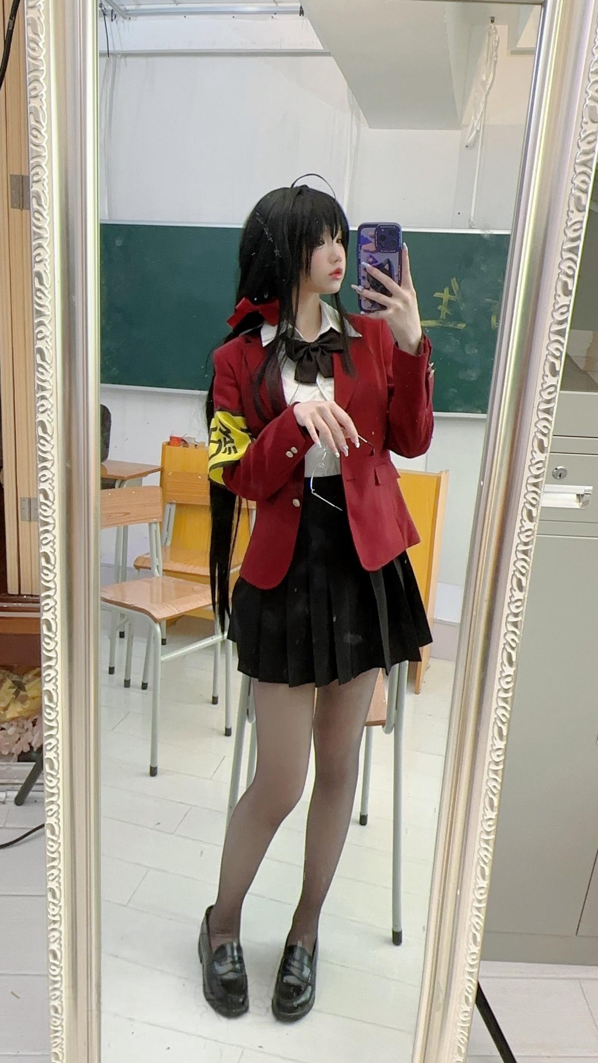 动漫博主雪晴Astra碧蓝航线风纪委员主题性感学生制服露白色内衣配黑丝袜秀美腿诱惑写...