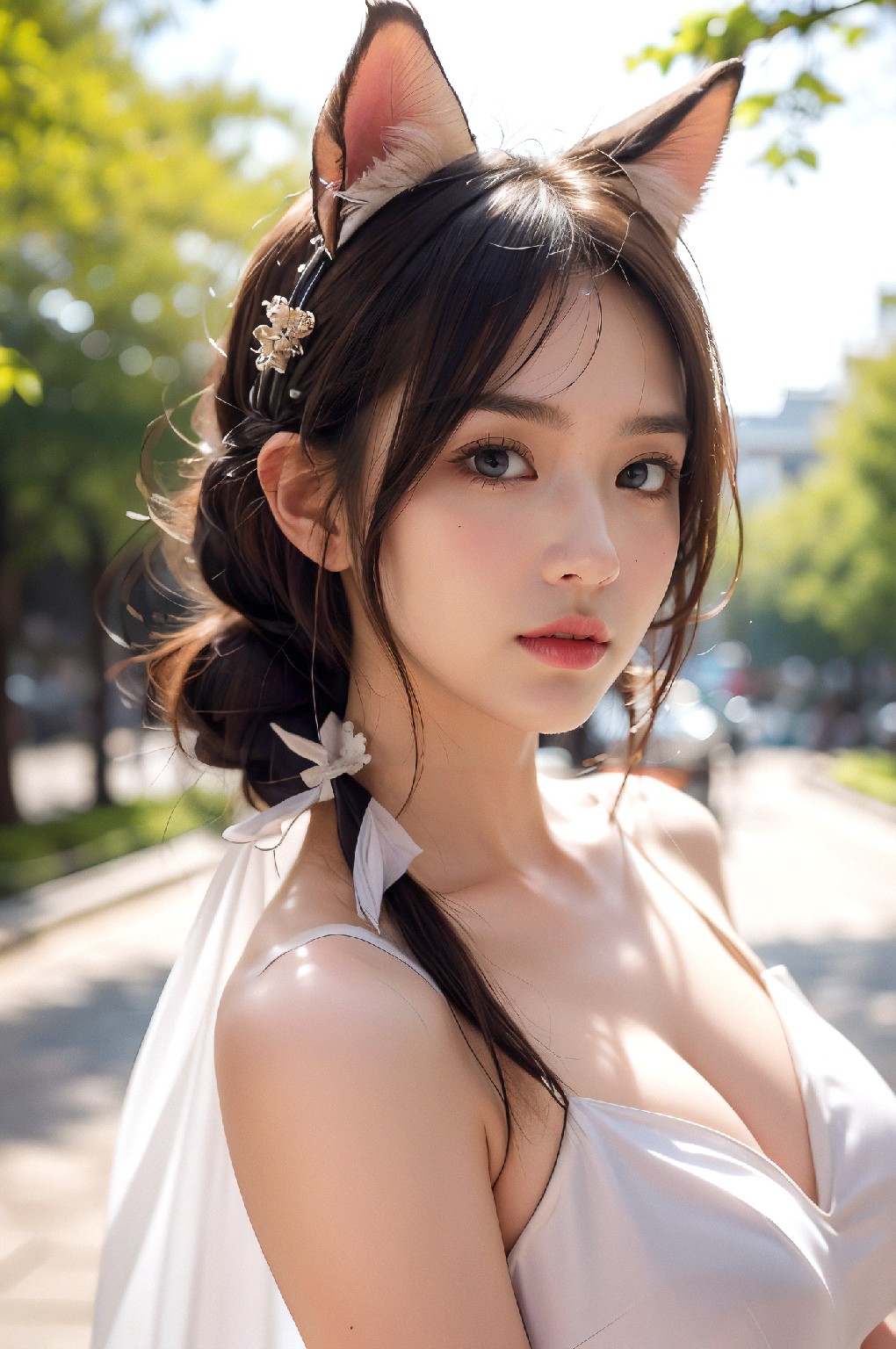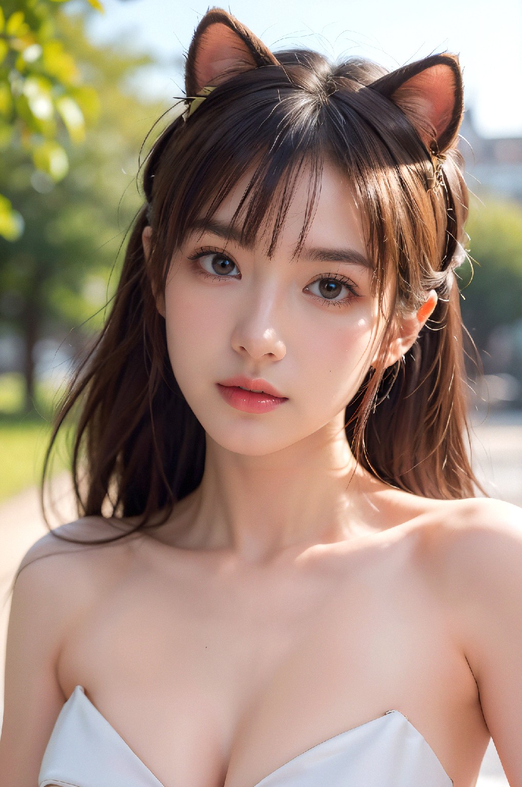 白色迷你裙动物耳朵