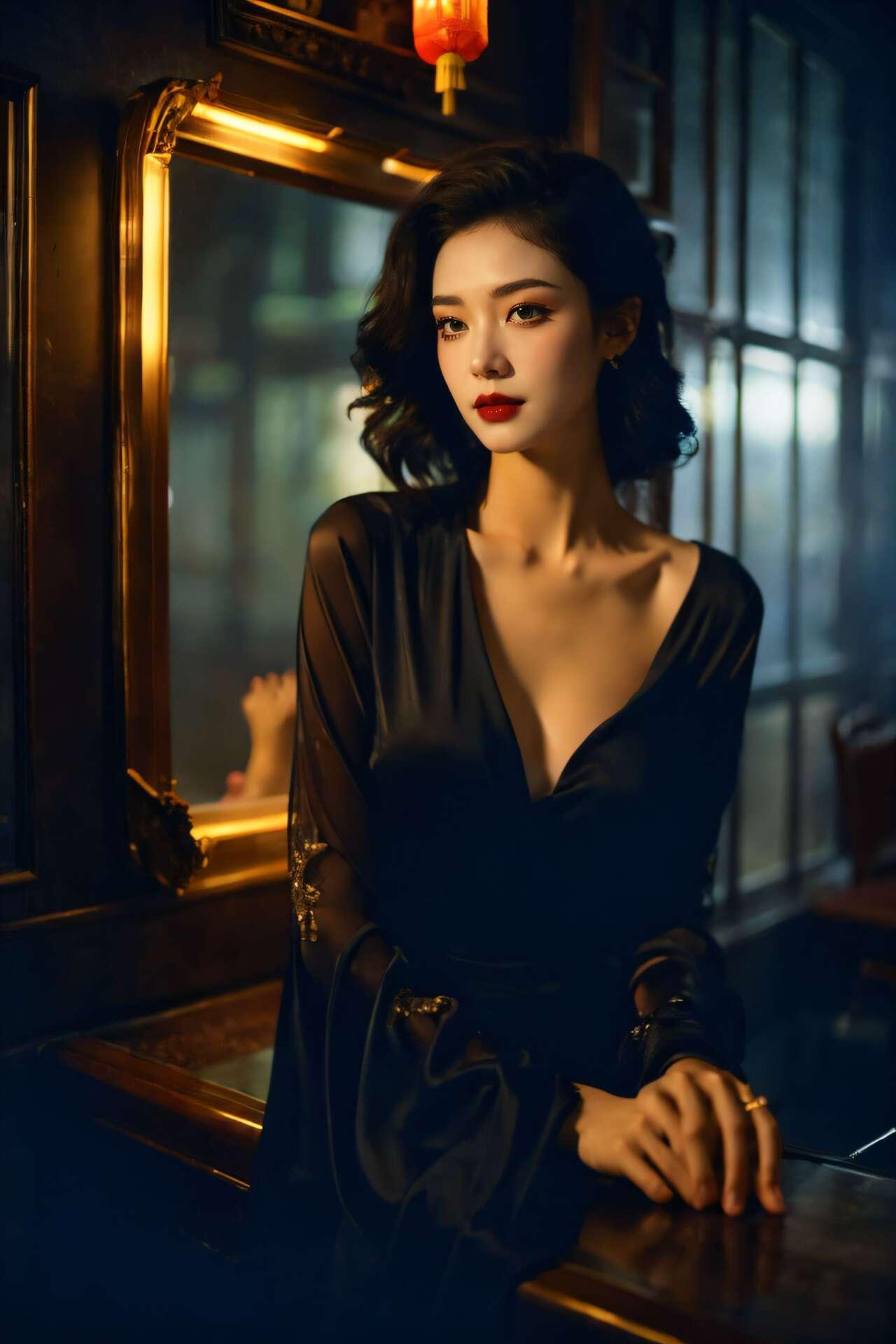 清纯唯美系列:暗黑黑丝的美女[AI Generated] 1