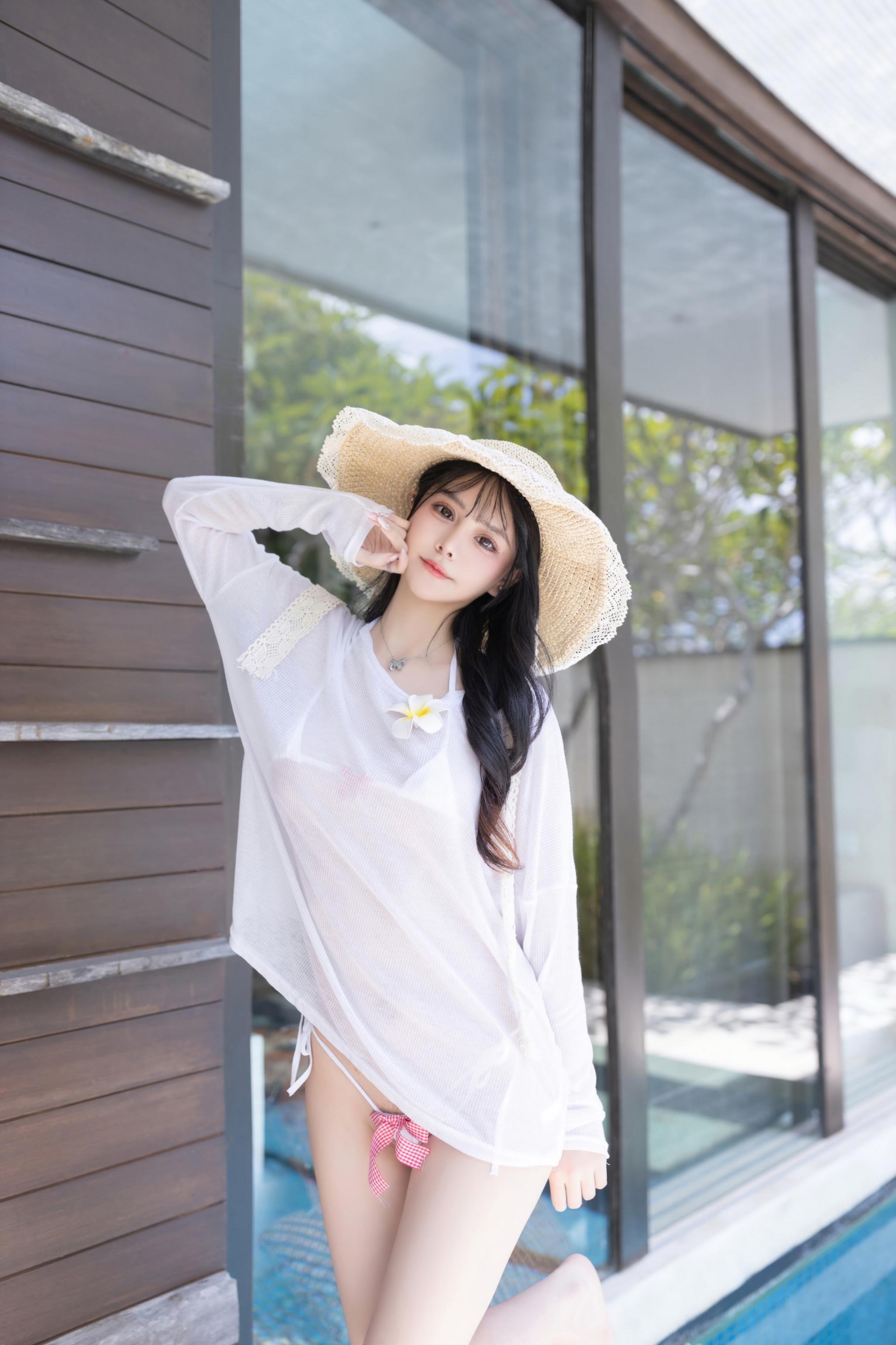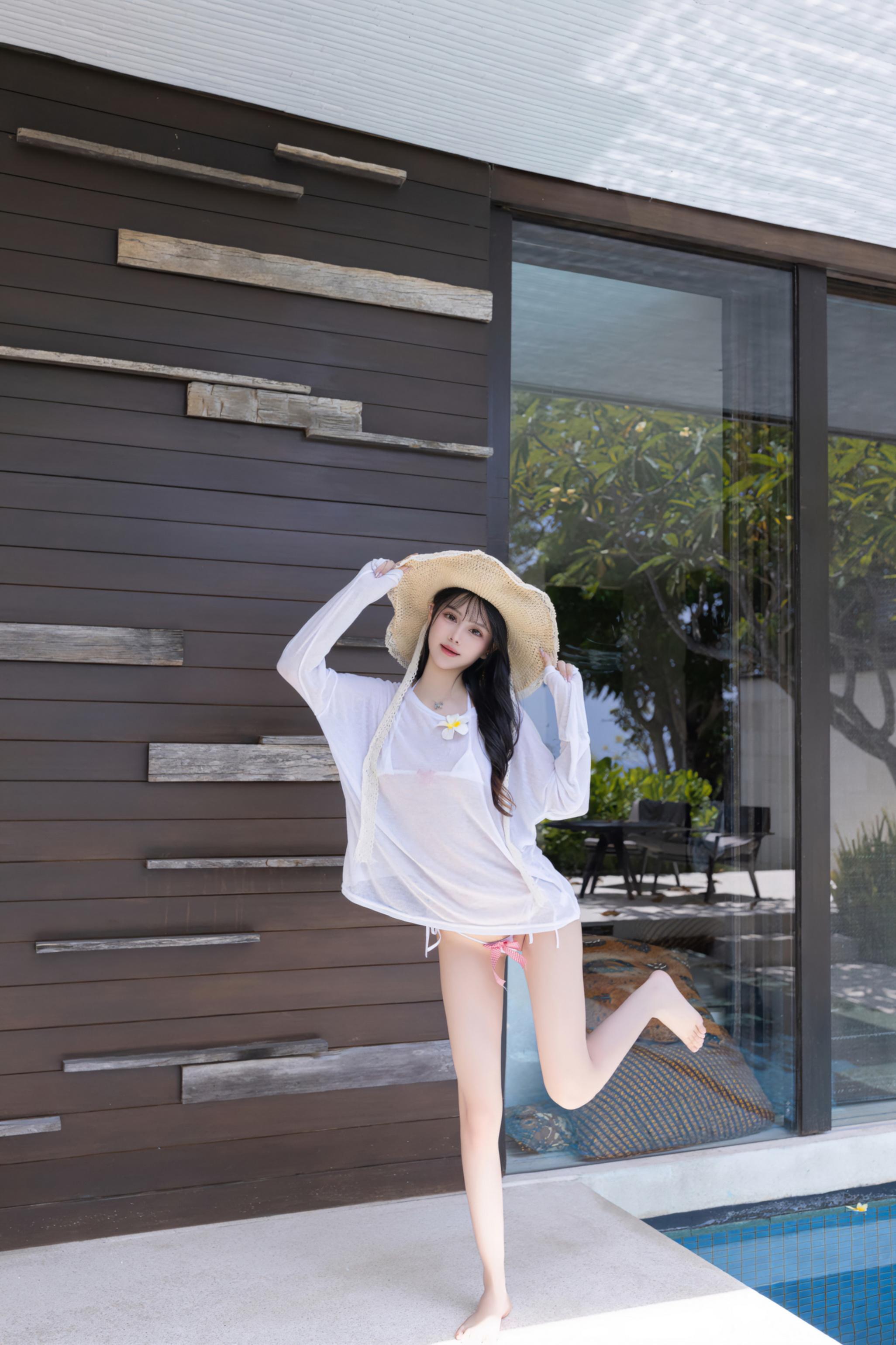 谢小蒽 白色泳装