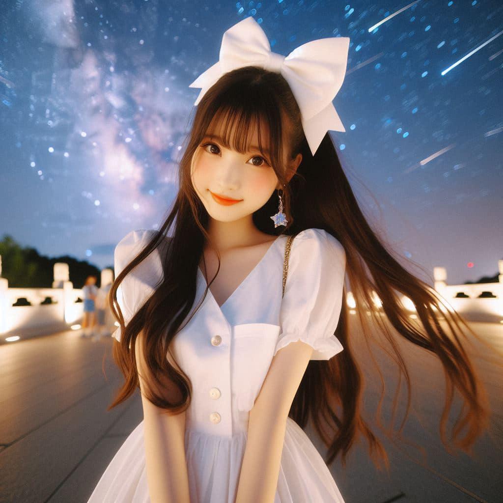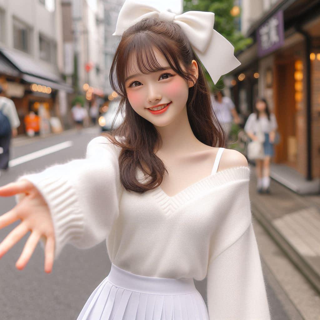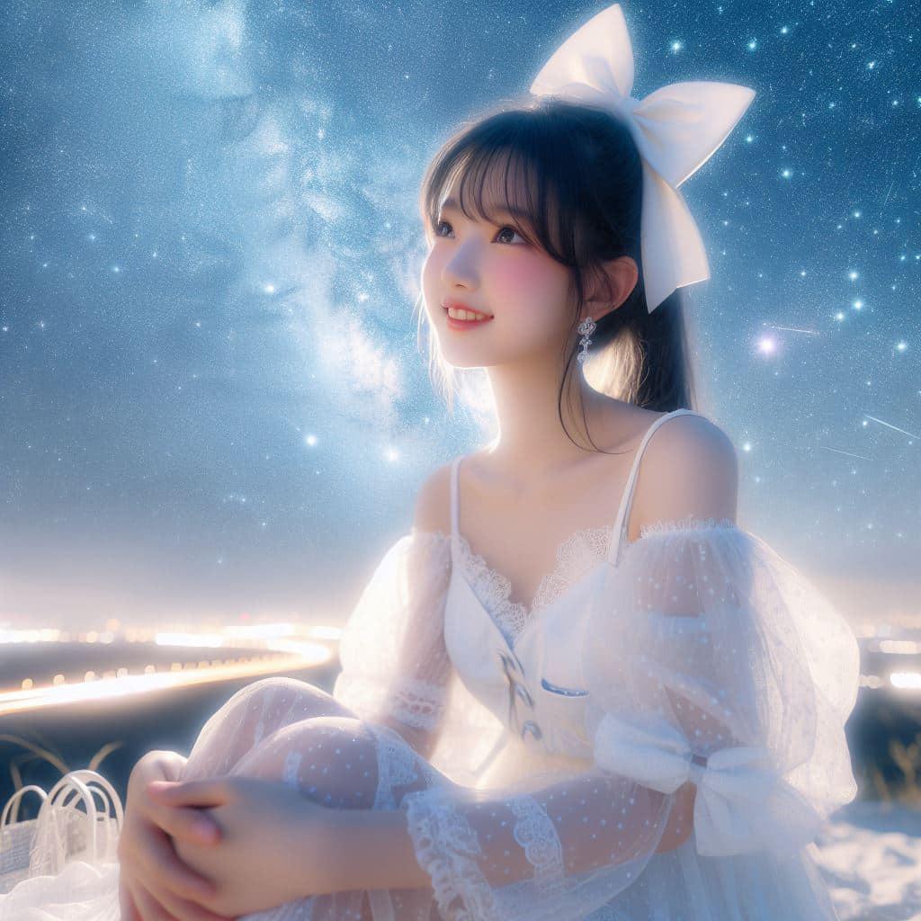 身穿白色洋装.绑大蝴蝶结的妹子