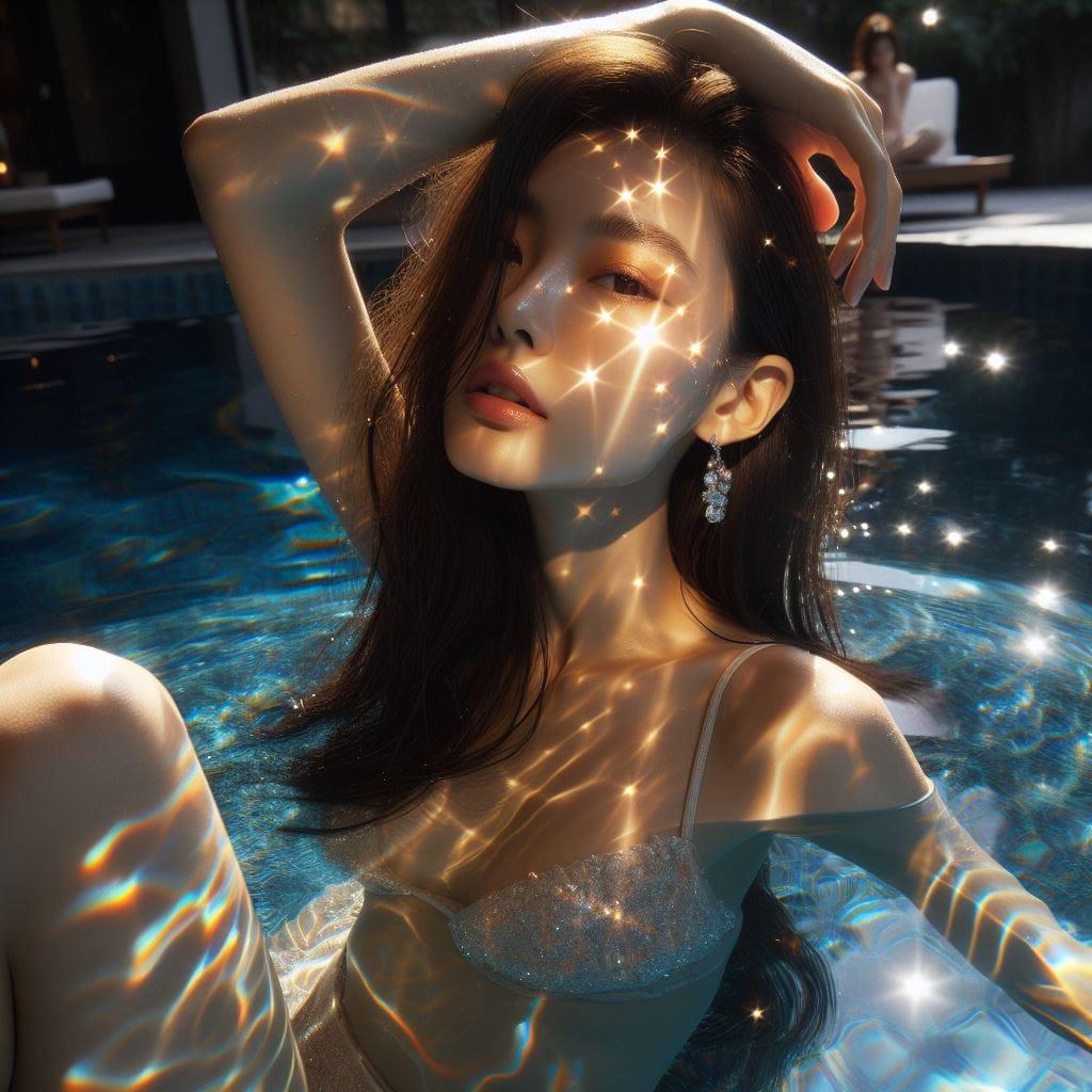 妹子在私人度假饭店.高级泳池拍艺术照