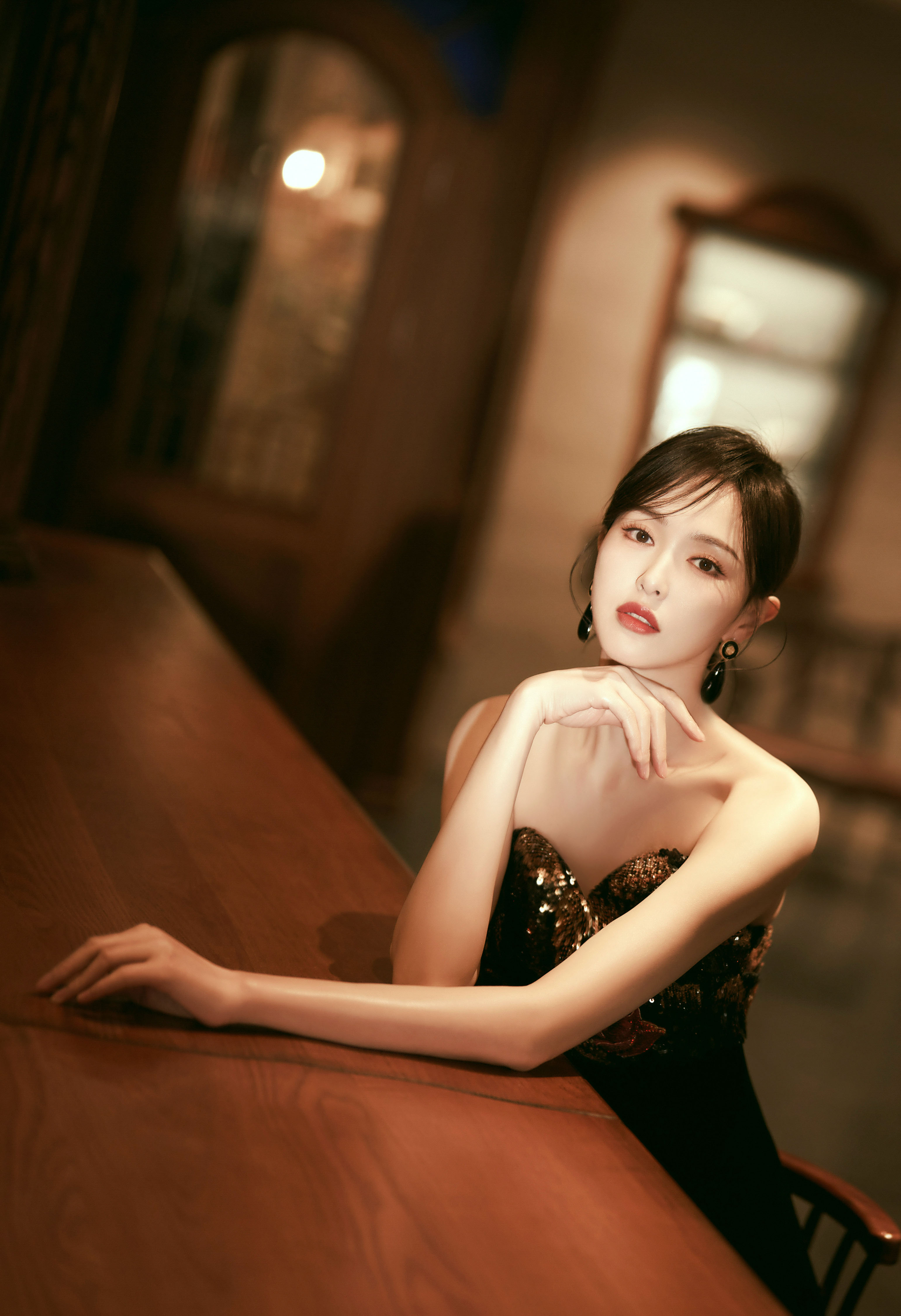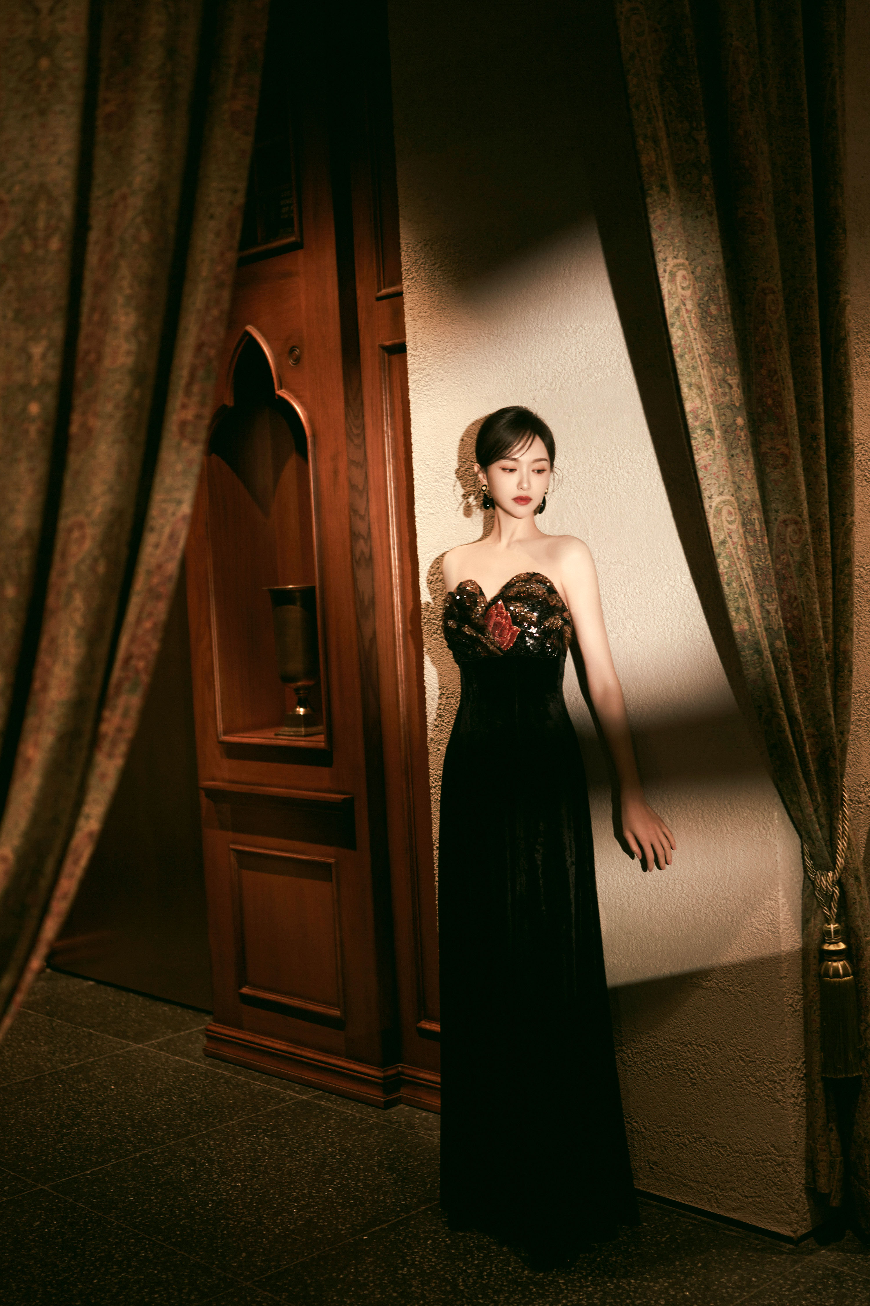 高衩红裙黑领带—关晓彤[高清套图]