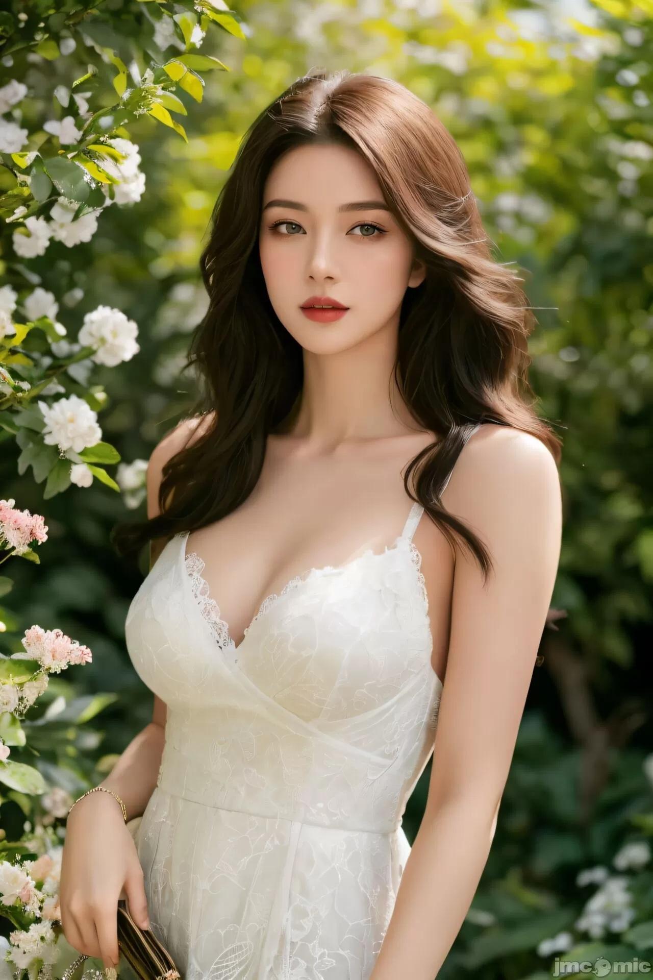 [AI Generated] 清纯唯美系列:户外写真半露白裙