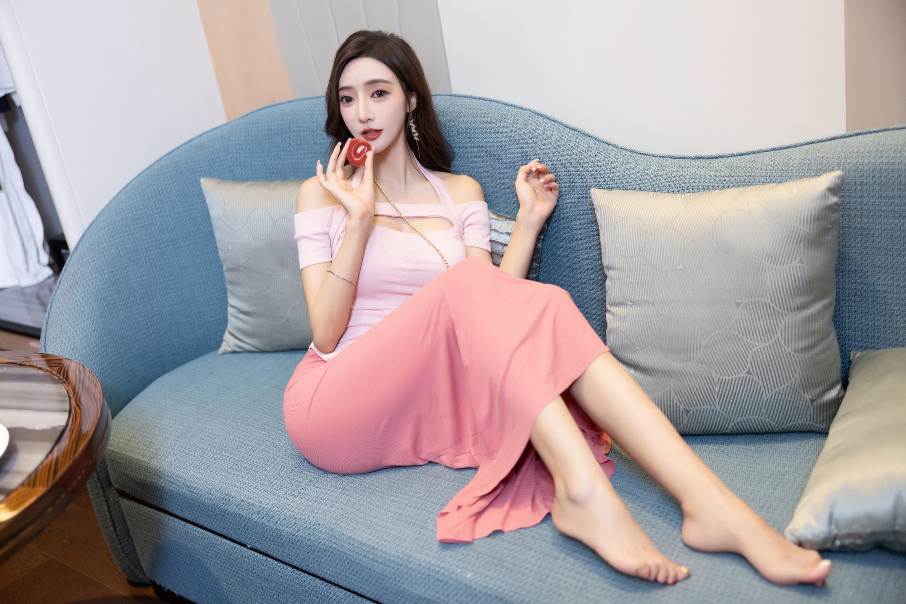 王馨瑶Yanni 粉色上衣加半身裙配小奶牛