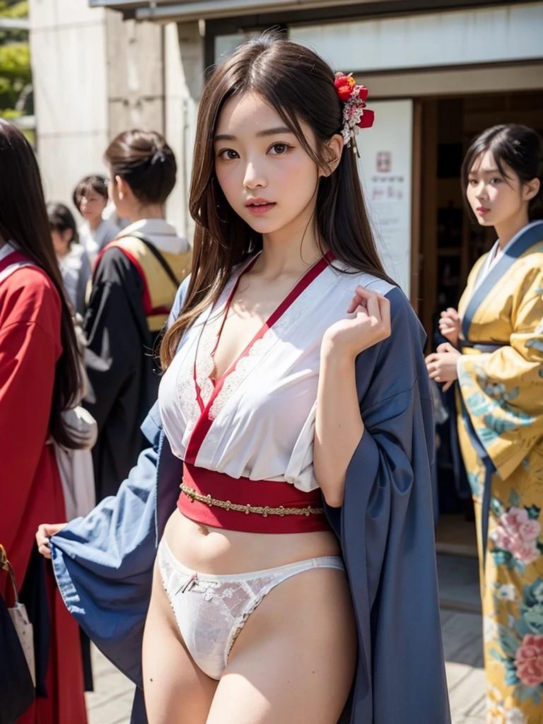 日本和服女子.淡彩水墨画