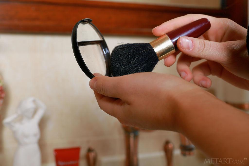 坐在化妆台上摆出性感姿势的美女!Stefany Sonri