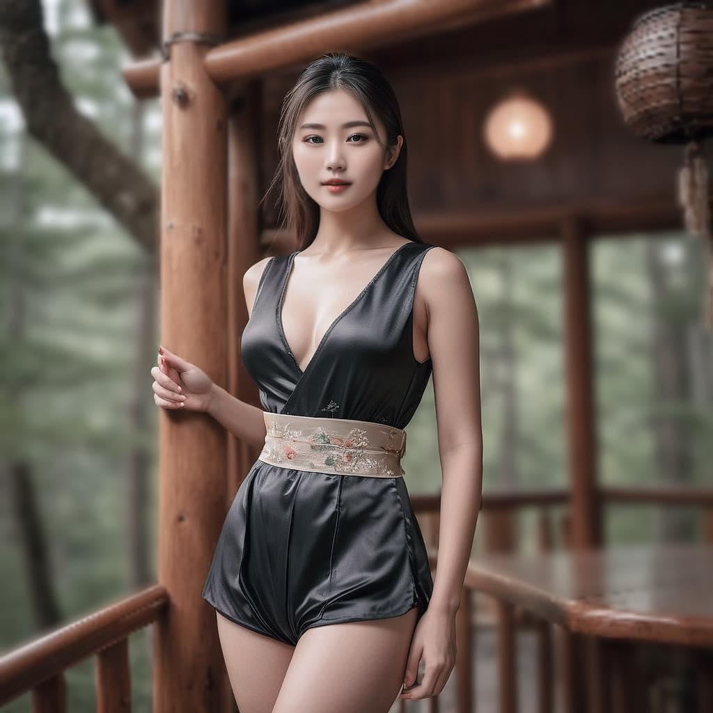 妹子喜好大自然.在挪威的森林树屋.竹林凉亭