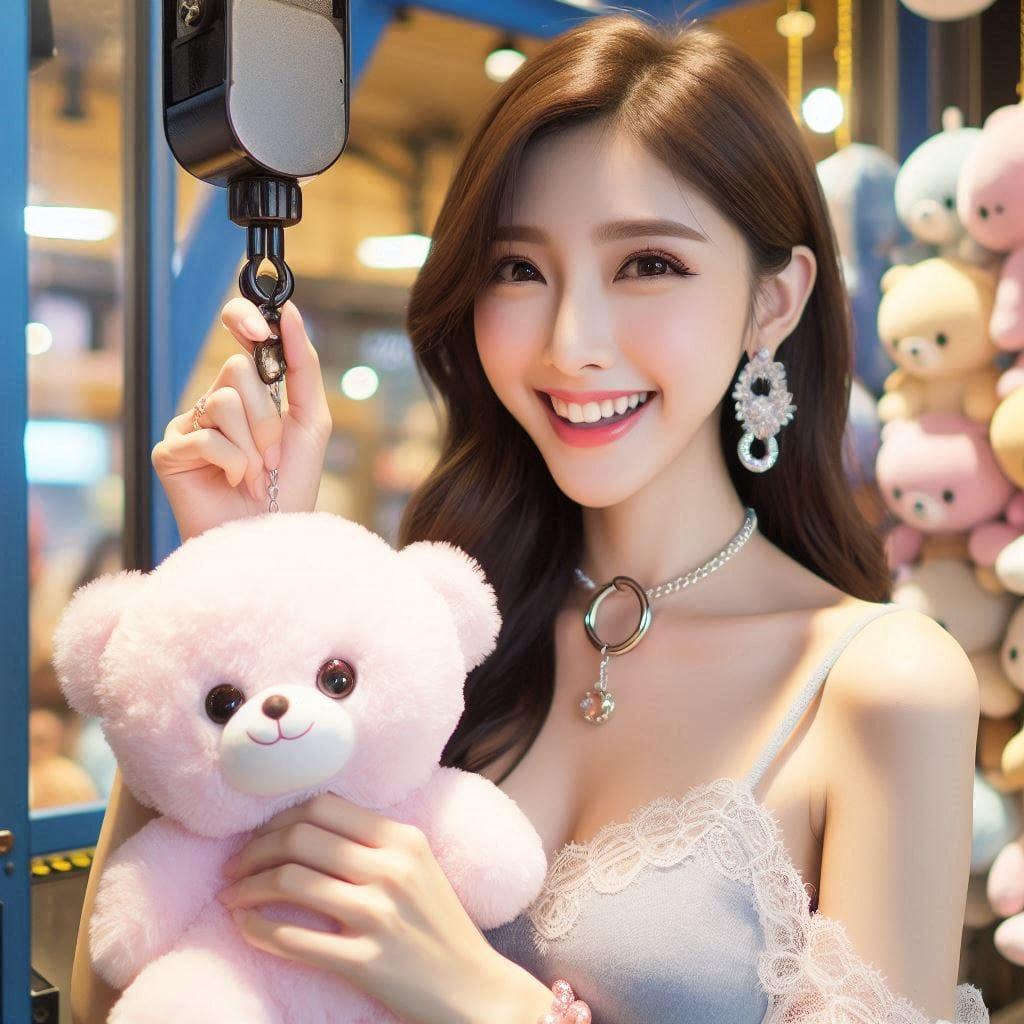 妹子在重工业风夹娃娃机店玩