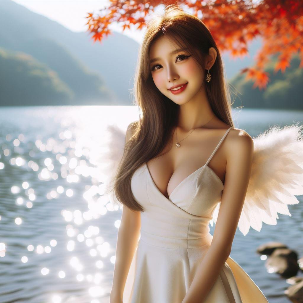 湖畔赏枫女子