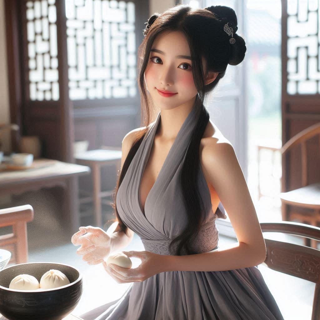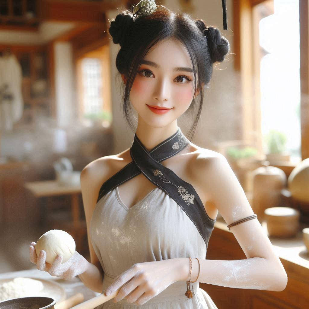杆面团捏包子的古代妹子
